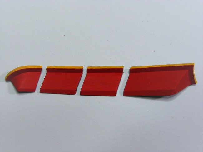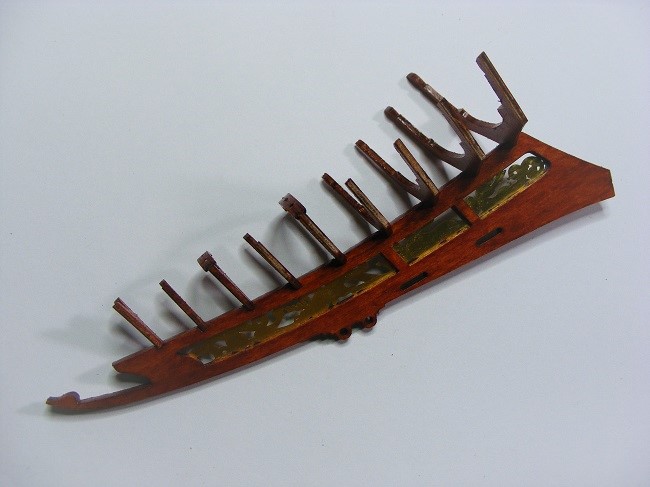 Paint or stain the stem with the same colour as that used for the hull. Now paint the bow platform dark brown, RAL8022.