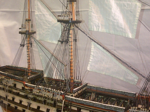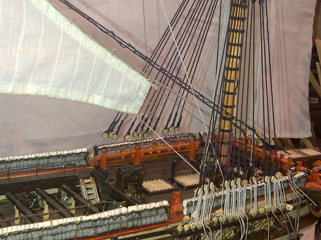 Thanks Alan, Ian and Robin. Fortunately I had no breakages Cool as such, more a case of things coming adrift, like the Boomkins, chainwales, hammock nets,cathead and gun port lids down the port side. The good news, is that it allowed me to redo a few things in the process, so all is well now and back in place. The thing that took the longest was the chainwales as all the shrouds and lanyards had to be undone and redone. so now it is onwards and upwards or is is up up and away.BigGrin