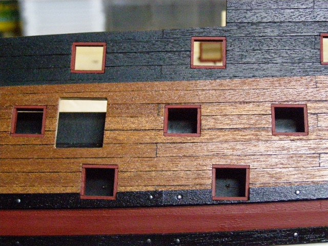 Issue #40 is finally complete with the installation of the Gunwales and Gun Ports. Some minor variations to the supplied materials as explained below.