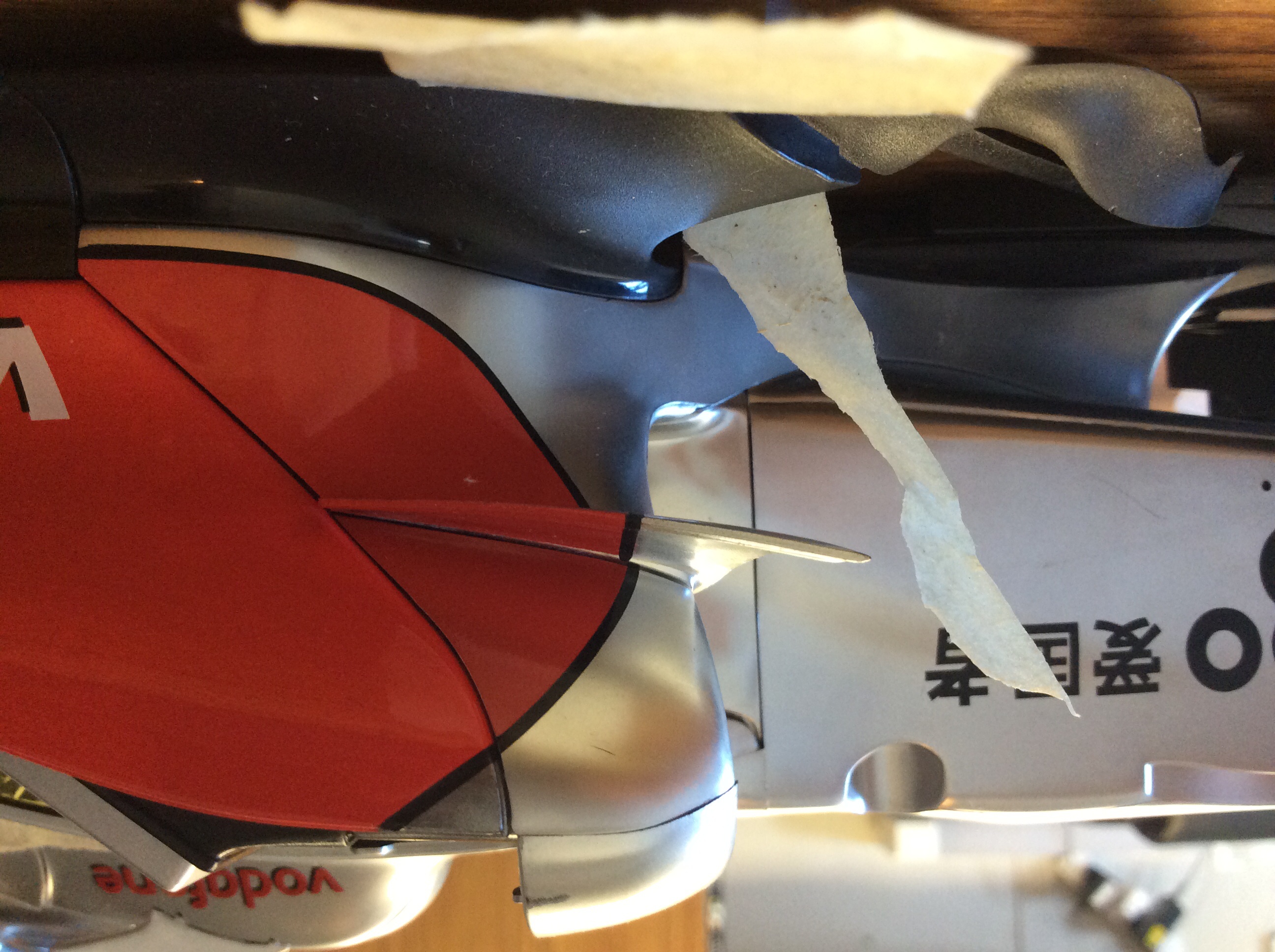 Hi guys. I've just got back to my mclaren which has been on a ship on a mission all over the place! Sadly the ship has hit a bit of bad weather during this time and the car has suffered a bit of damage. Nothing that won't mend though luckily! I do however have a bit of a problem with the panels that sit below the front part of the side pod. The bit that sticks out seems to be a bit bent on one side and I was wondering if anyone had any tips on the best way to "coax" it back in to alignment. I'll try post a pic up now to show what I mean! Cheers Scott If at first you don't succeed........skydiving is not for you!