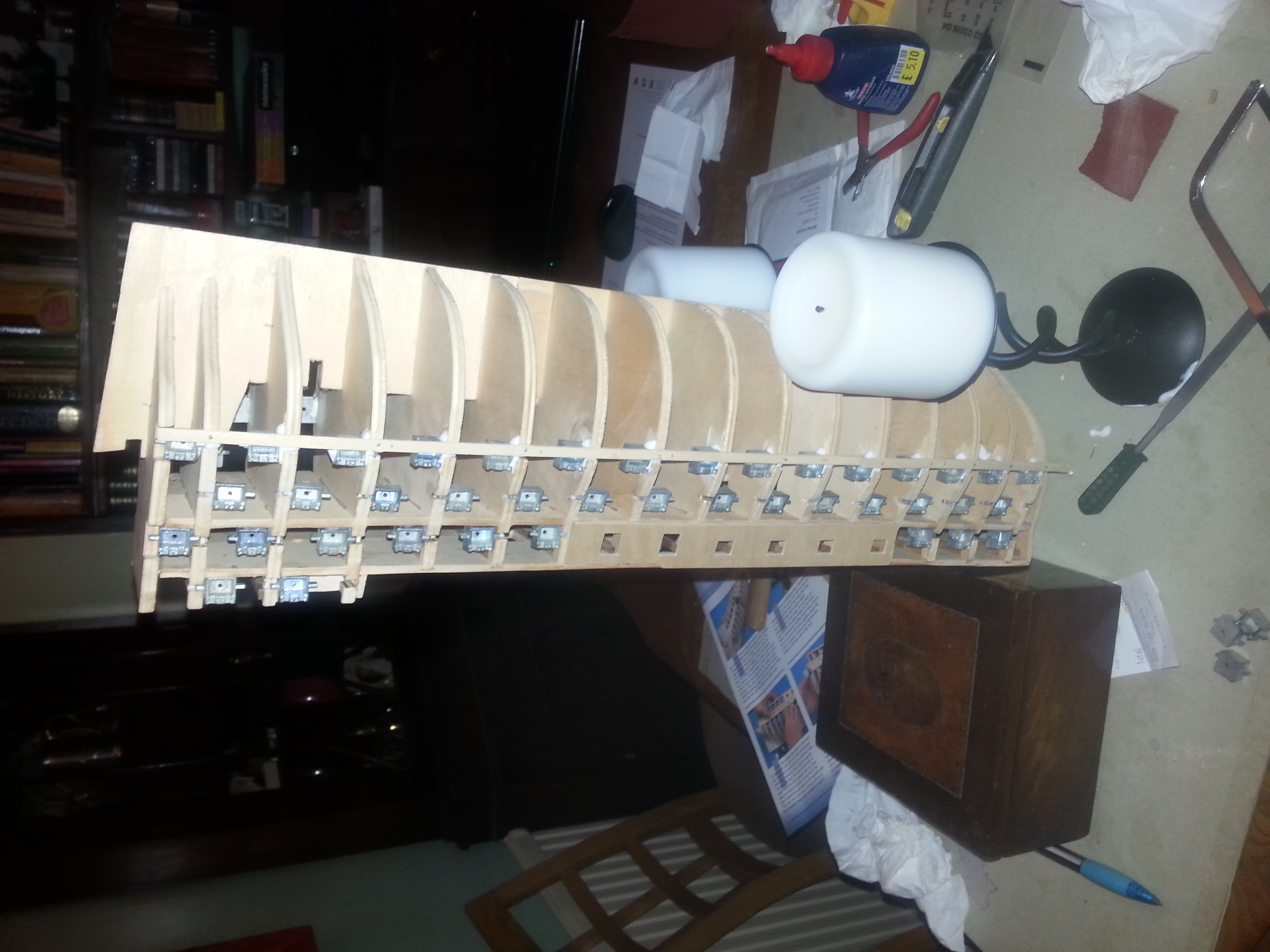 As a kid i used to build plastic kit Airfix model aeroplanes, and come November put bangers in them and chuck 'em out of the top window of the house, all good fun, then in my early teens built an Airfix kit of the Victory and again in my early twenties which my kids duly wrecked a few years after that so i haven't done any modelling for years(they're a lot older now), then i saw this advertised and thought i'll have a crack at that, so i started building and put together the ribs, decks and gunports then forgot about it for what must be nigh on ten years, so this was the stage i was at when i started building again.