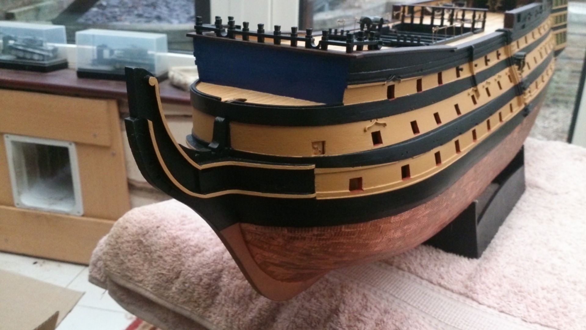 hi managed to finish quarter gallerys.today .and add the gun port lids required,before add chain whales.kinda work all over place why waitin for paint to dry on other items. cheers mick. Builds hms victory, suzuki gsx 1300 R hayabusa, honda C B 750, lamborghini countach L P 500 S, tamiya 1/16 rc full option tiger 1 tank, built, Mclaren M P 4 - 23. Occre london tram, Stash.airfix 1/24 mosquito. Diag Virginia schooner, tamiya 1/6 honda 750, tamiya 1/35 famo, tamiya 1/35 flak 88.