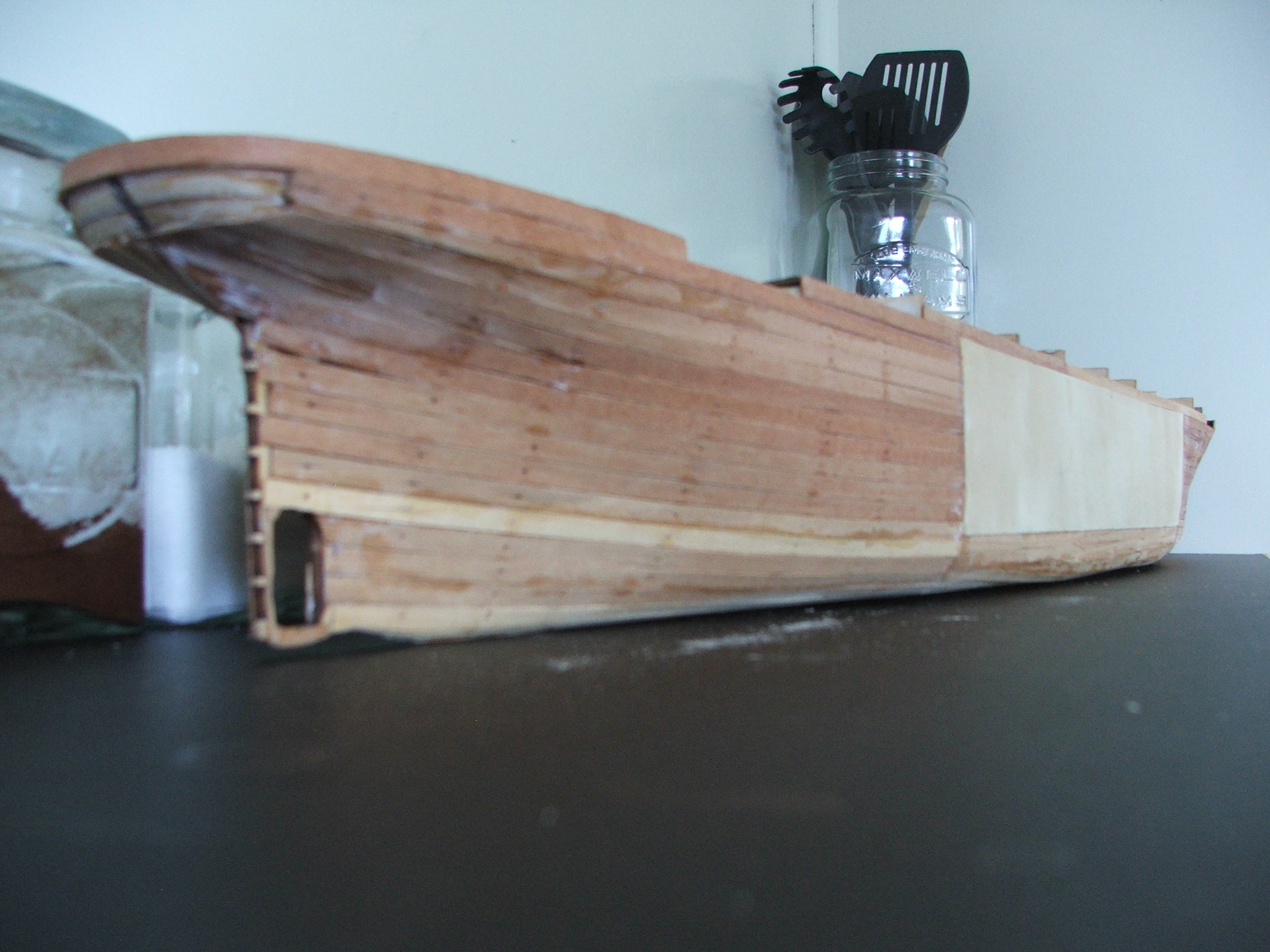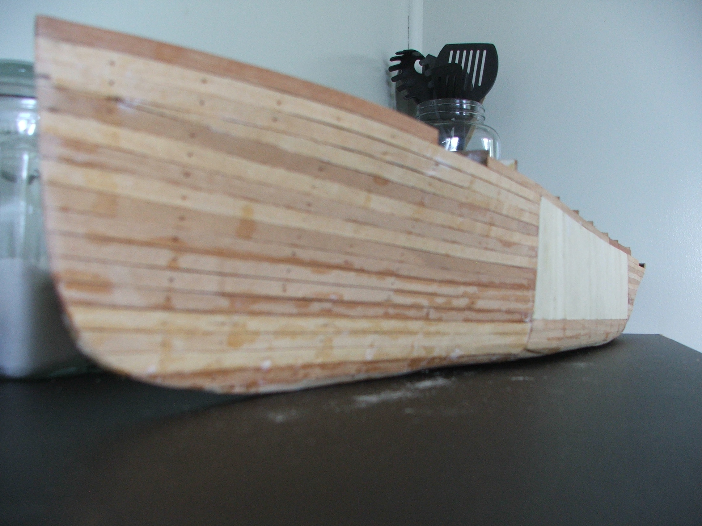 Hi all. Here is the first updates of my rebuild. The hull planking first layer has been completed. Next will be filling and sanding to give her a nice smooth finish before the second layer of planking goes on. More updates soon.