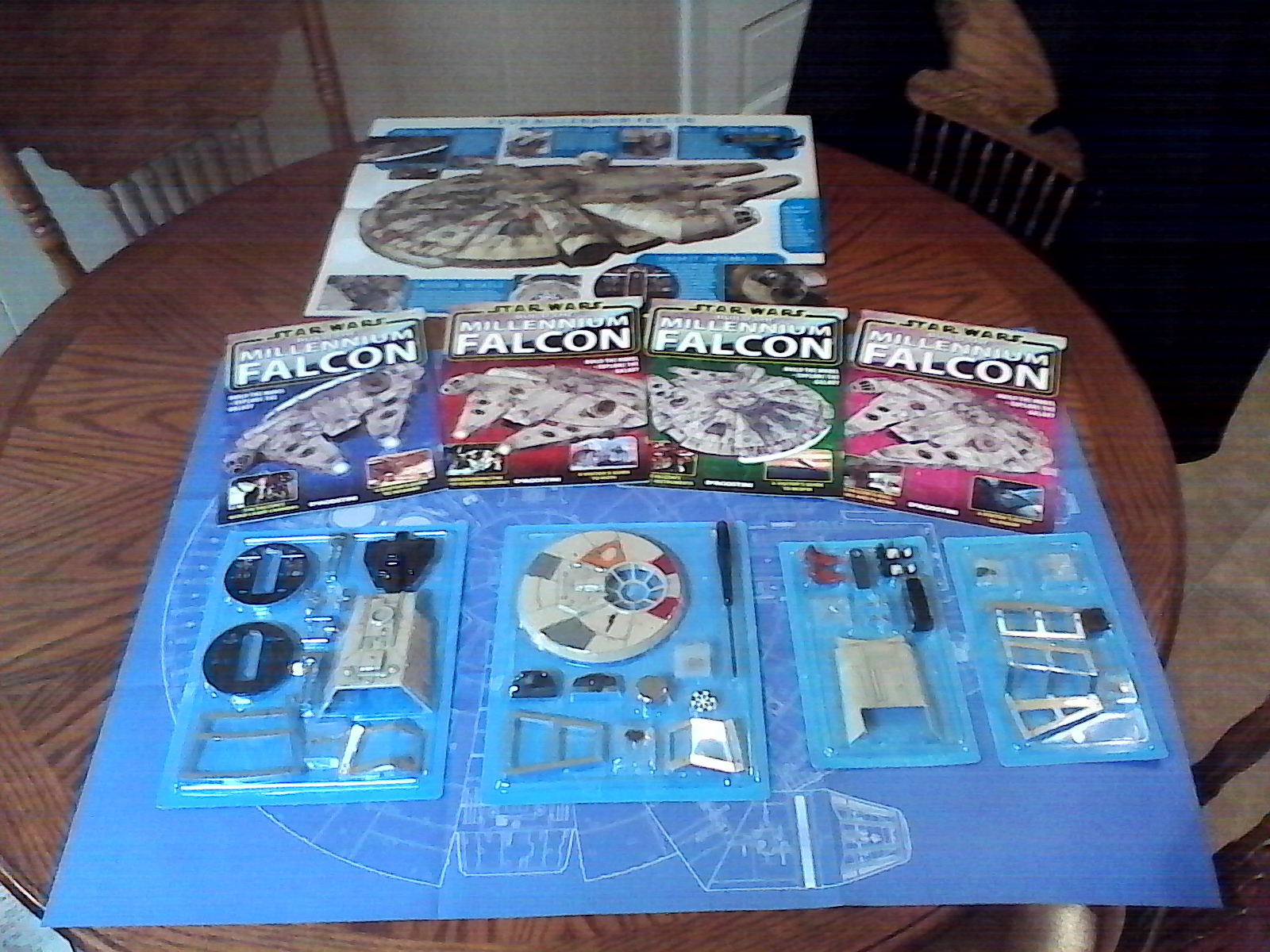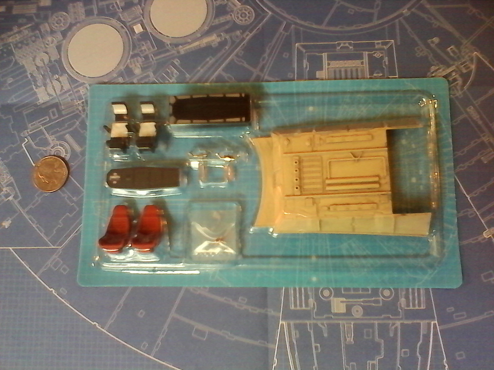 Well I've been putting it off for a while waiting for the next batch of parts before I begin, and while doing so I'm working out a game plan (not that it's rigid mind you), but just a set of reminder guides to help me out while working on this beauty! Now mind you, I've been following everyone's builds so far and have gotten some great tips and ideas on what I want to do with mine. Until I start ripping open the packs, I'll be posting my own personal guides for this as reminders of things I need to do. So here we go... Here are my first packs of parts... issues 1-4. My first impression was WOW. The detail is completely and totally off the chain! My second impression was that the pieces are smaller then I imagined. That's not a bad thing mind you, just that after seeing all the pics of this online all this time, the pieces seem to look bigger, but then you never really see anything else in the photos that give it a good scale. Well here's my pics. I placed a quarter next to the packs to give it a better idea of scale. I haven't taken the parts out of the packaging yet because I think I'm gonna hold off on putting things together until I get a few more pieces. Also thinking of getting some of Tony's 3D pieces on Shapeways to take this thing to the next level! In any event, I know I need to start stocking up on some paints. Most of mine are enamels and have gotten pretty old. I think I want to go with acrylics for this and am wondering which would be the most useful. I've heard Vallejo paints are good, as well as a couple of other brands, but if you got any good advice, let me know. And now here's the pics! Everything that I received  Parts Pack #1  Parts Pack #2  Parts Pack #3  Parts Pack #4  Yeah I know... gotta get out my better camera. Was so excited I used my cell phone to take those pics! Just a few things I'm making notes on before I begin building... ideas that I've been considering. - Pop out the top window frame and rotate it about 15 degrees. - Make some scans of the stickers to make decals instead. Will be committing to buying Tony's cockpit details as soon as I get the money and love the detail of the stickers, so to compromise, by doing a high-res scan of the stickers, I can print them up on photo paper, then create my own decals by spraying the print with clear gloss spray paint. When the printed parts come in, use the printed decals for the fine details. I believe I may be able to get the white long wall lights by placing a sheet of paper in the holes of the lights that will provide a good base and scatter the lights. Still trying to figure that part out yet. - Get some self flashing LEDs in red, blue and white and use fiber optics to light the cockpit consoles... not sure if the kit will have any flashing lights or not, but it should. - I think I'm gonna build the framework as I receive the parts. This will allow me to have the shell frame to build and then I can work on all the parts after the entire frame is together. - Work on a good match color formula in paint that will match the hull color that the parts are provided in. I'm thinking 1 part yellow, 1 part black, 8 parts white. That should get me close but will come up with a better formula later as I start comparing on the actual parts. - The interior seating looks off to me so far from what I've seen of some of the UK builds and after skimming thru my SW Movies, I noticed the seat backs don't go past the end of the console behind the seating on the right hand side (right side as you're sitting in the seats). - There are also some evenly spaced small embedded black control panels with buttons or something in them. Will probably have to run some fiber optics into them. - There are seat belts. They look like standard two strap gray seat belts but with a big round avition style buckle. There are at least 3 of them. Ben, Luke and 3PO use them in the original movie ANH as they are taking off from Mos Eisley. - There's a dual ended cylider with lights at each end that are included with the kit but aren't lit. May have to scratch build that so it can be lit in some fashion. I'll be adding more thoughts and ideas as I go along, but so far so good. Got alot to do and at least a fair amount of time to do it in.