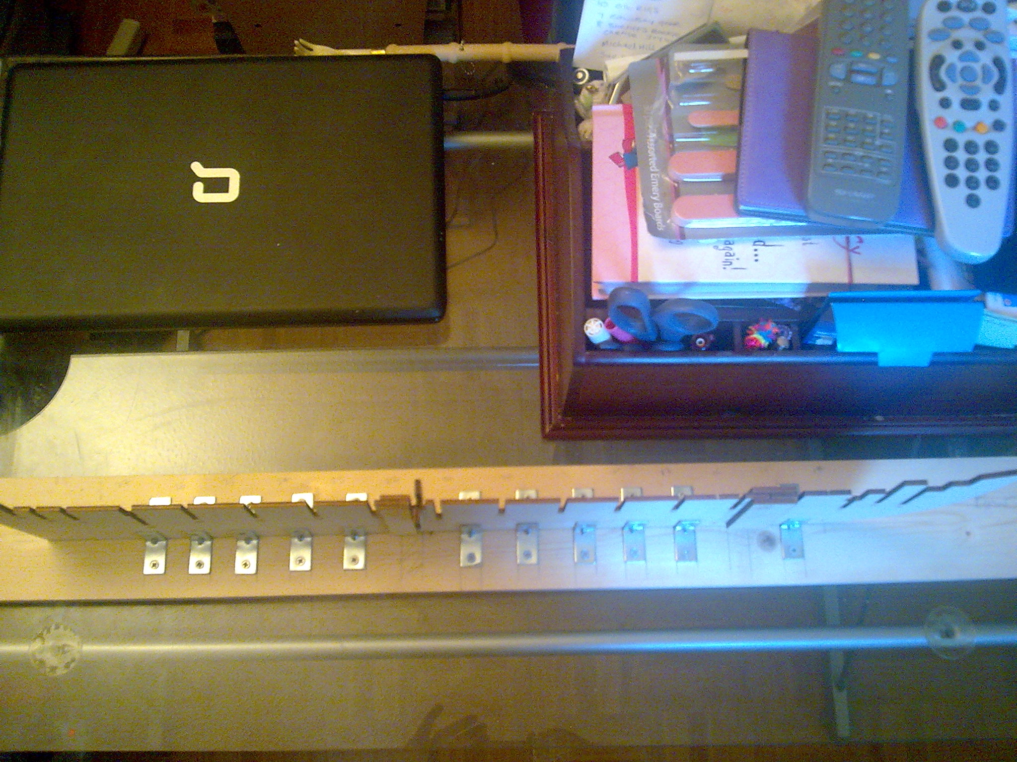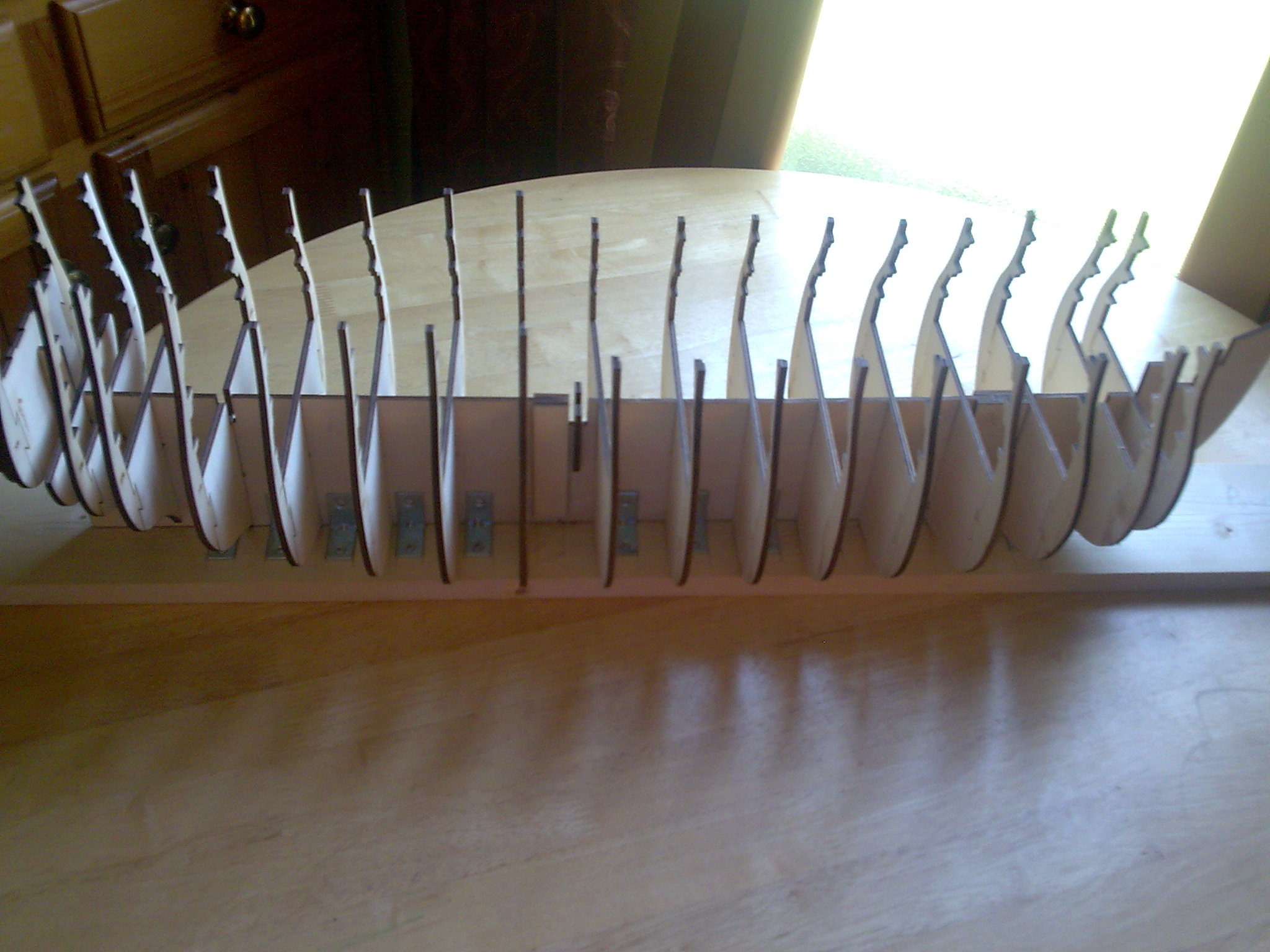 In the meantime space has appeared on the work-bench (my desk) and I've made a jig for the build. The internal keel has been put together and is now in the jig whilst I get on with making the ribs.