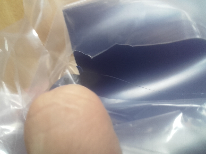 Looks like the box has been cut open with a knife which has also cut into the content packs. Have flagged this with despatch.