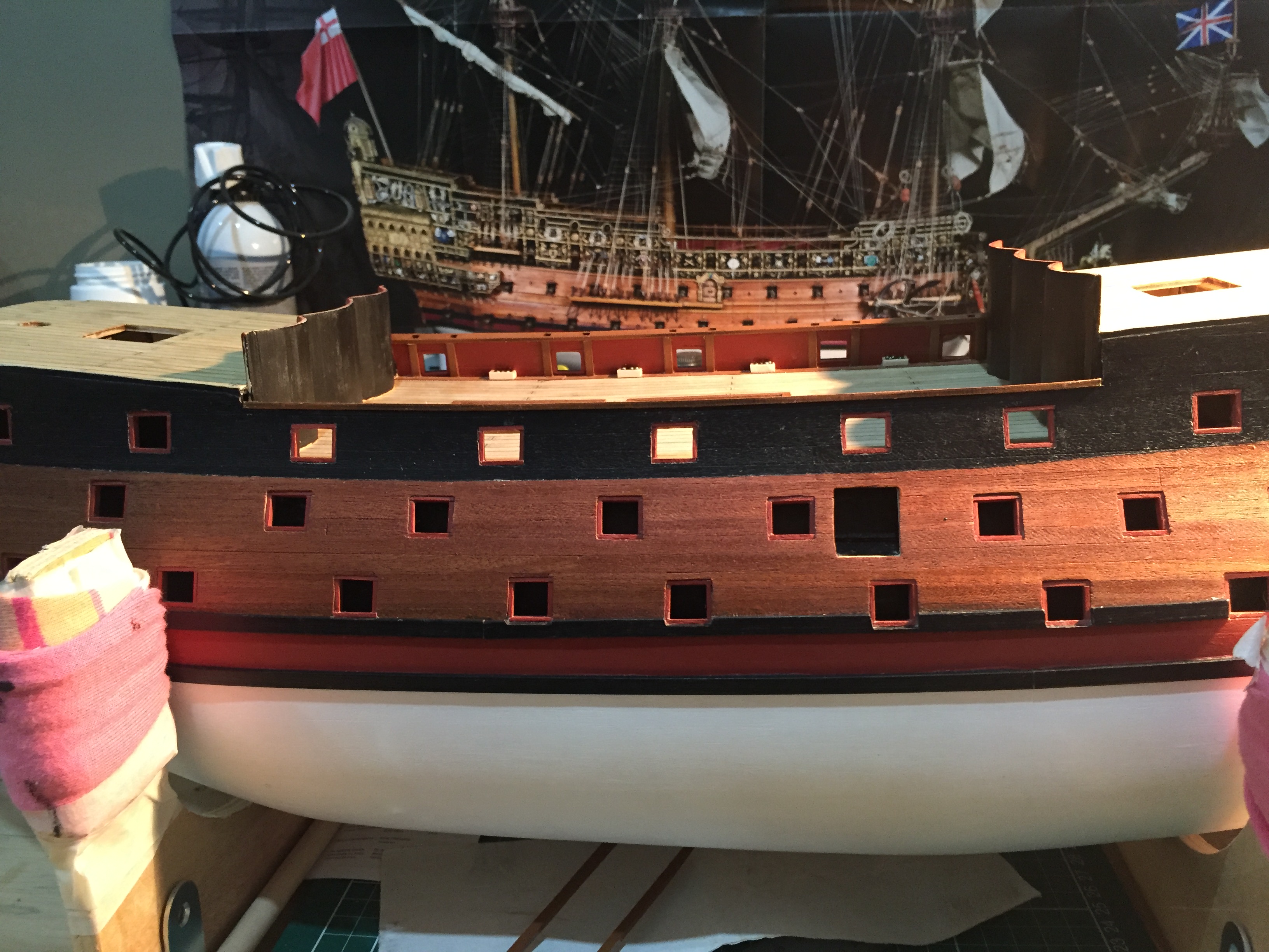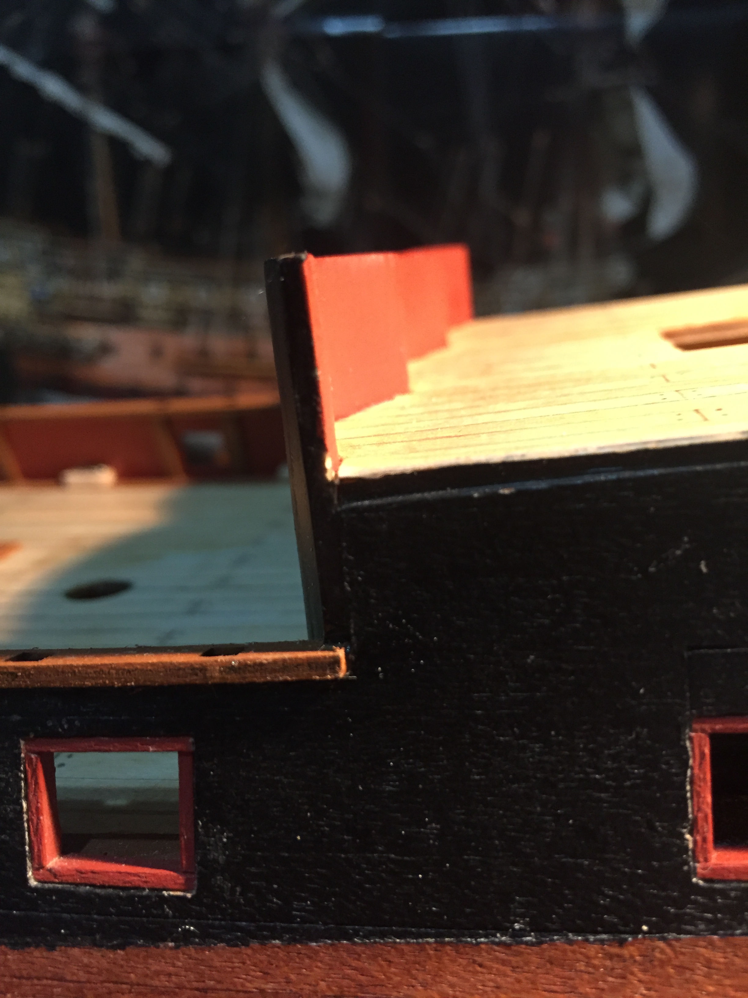 Glad that my pics show that things are right thus far. However, if I place the top handrail level with the decks there will be a very distinct taper in the handrail posts from forecastle (short posts) to the quarterdeck (longer posts). Not sure that this will look right.