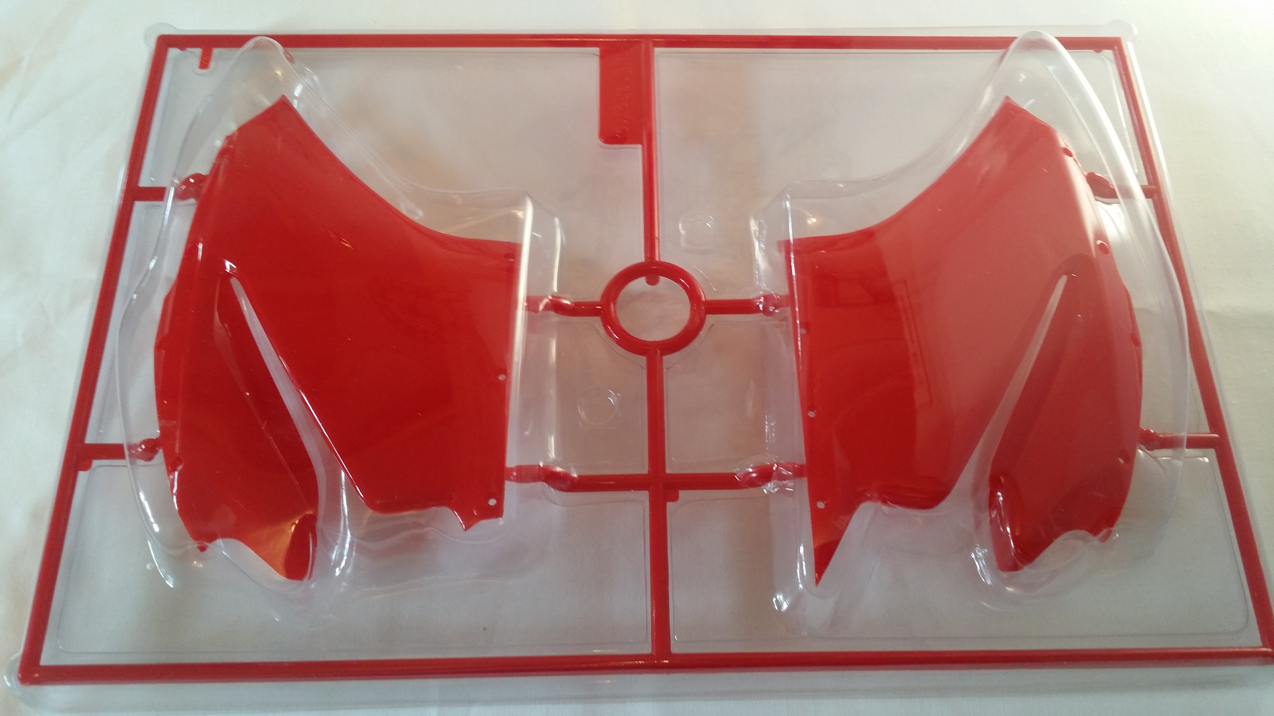 The next thing you find once opening the inner box is a mass of red fairings, all very well packed in blisters. All of the plastic parts are on sprues, perfectly formed with not a sink mark or flash to be seen. Great care will have to be taken removing the parts! I may paint them with Italian Ducati red, I will see what I think when the time comes.