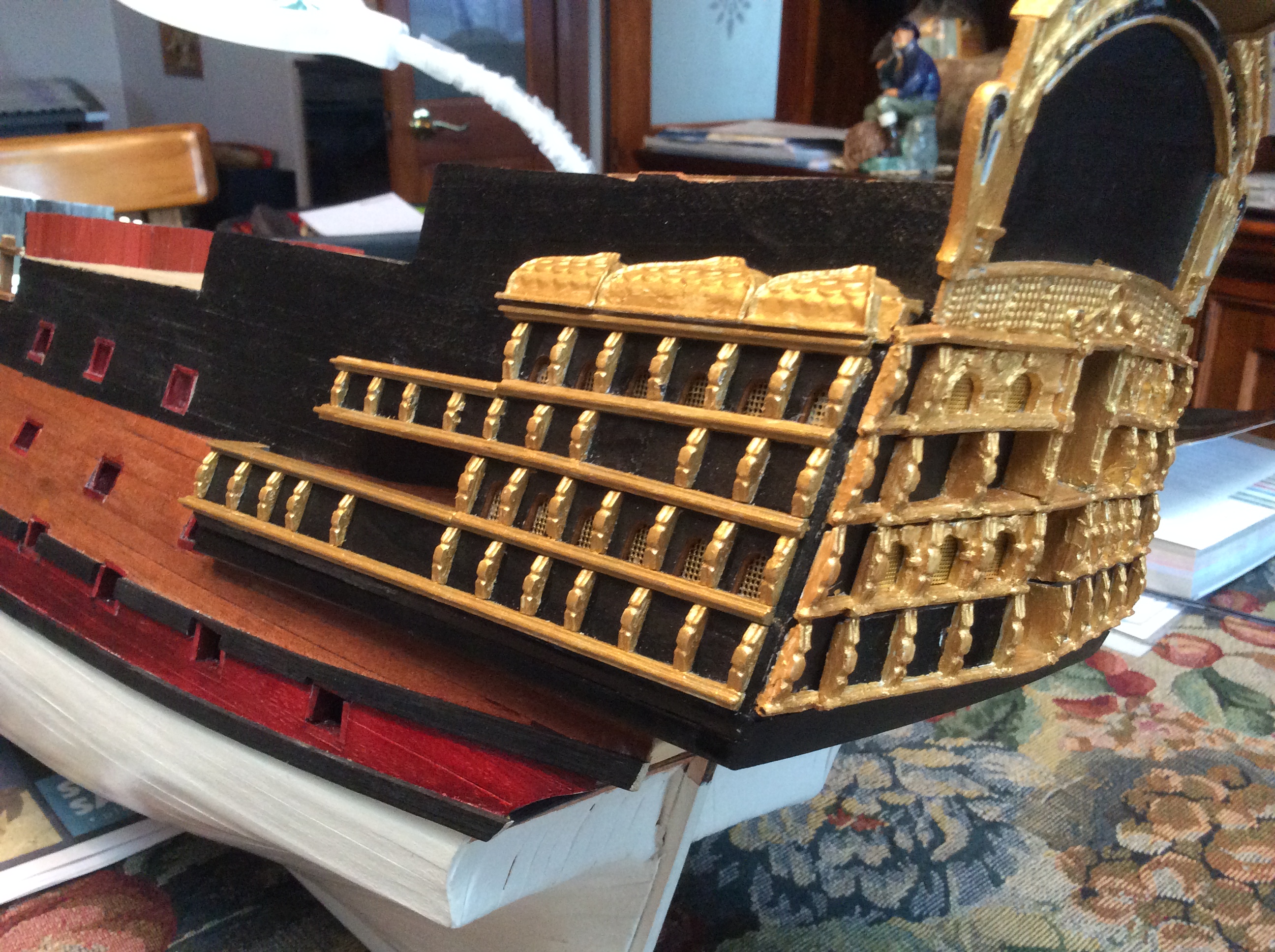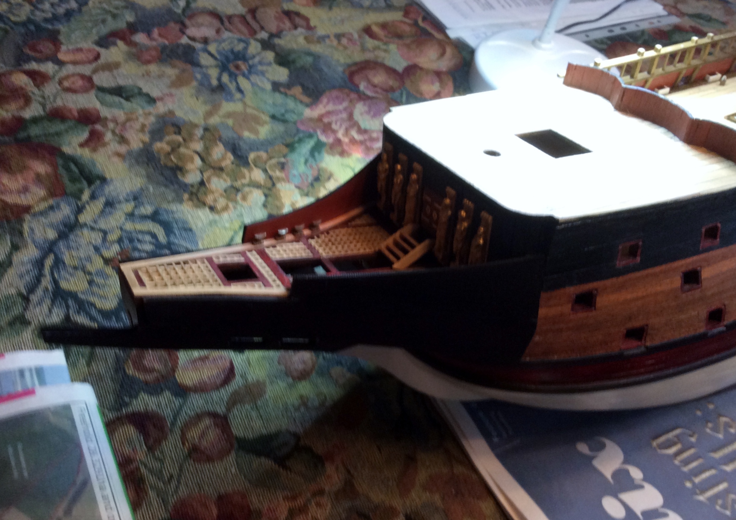 Have not posted fore some time. Build is going fine have made a number of mistakes along the way most of these have been able to correct and see others have made the same mistakes.The only one I am not too happy about is the lining of inside of the bulwark on either side of third deck gun ports, some of mine are 1 to 2 mm out of line with the handrail posts. Should have left this work until putting in the hand rails. Have not attempted to remove those that are out of line as yet, they were put in with P V A glue so should be removed with water. Have added some picks. File Attachment(s): greg francis attached the following image(s):