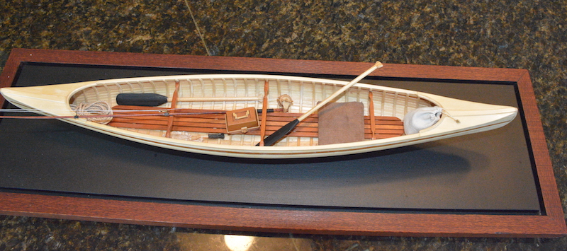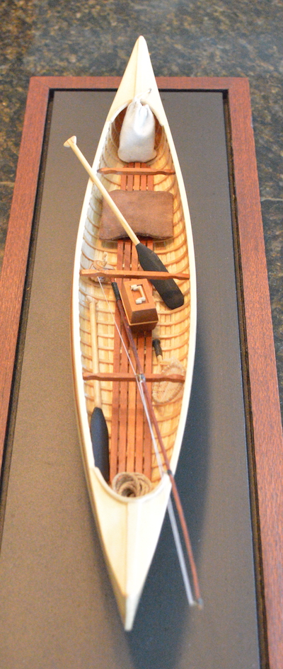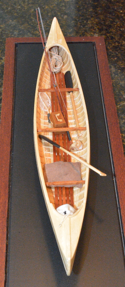 This kit was built about 8 years ago on a challenge from a fellow modeler. We saw this "Simple" inexpensive Midwest Products 1/8 scale Canadian Canoe kit in our local hobby shop. We decided to see who could do better in a 30 day timeframe. Well, here is my effort. It appeared the kit was a bit more difficult than the box described.
