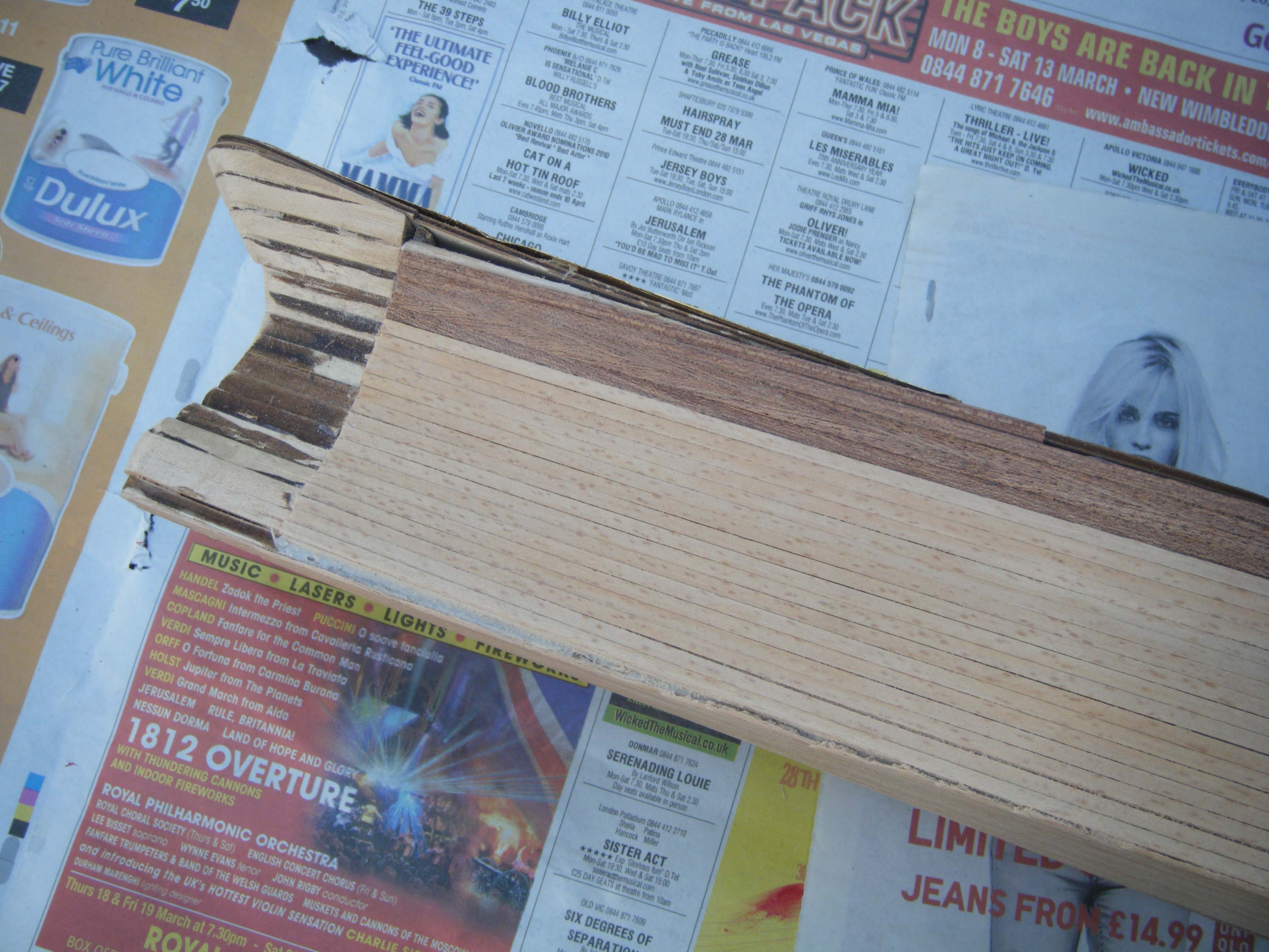 I will fill in the holes in the hull with remaining wood first and then double plank form there..