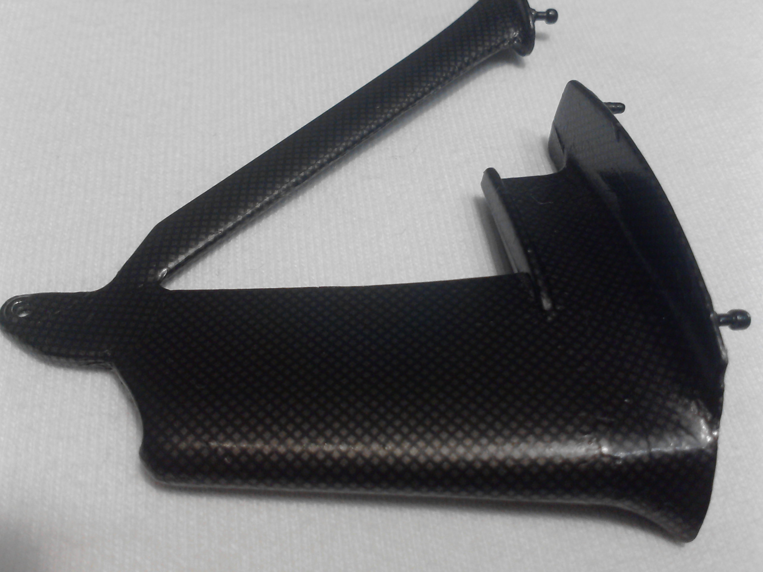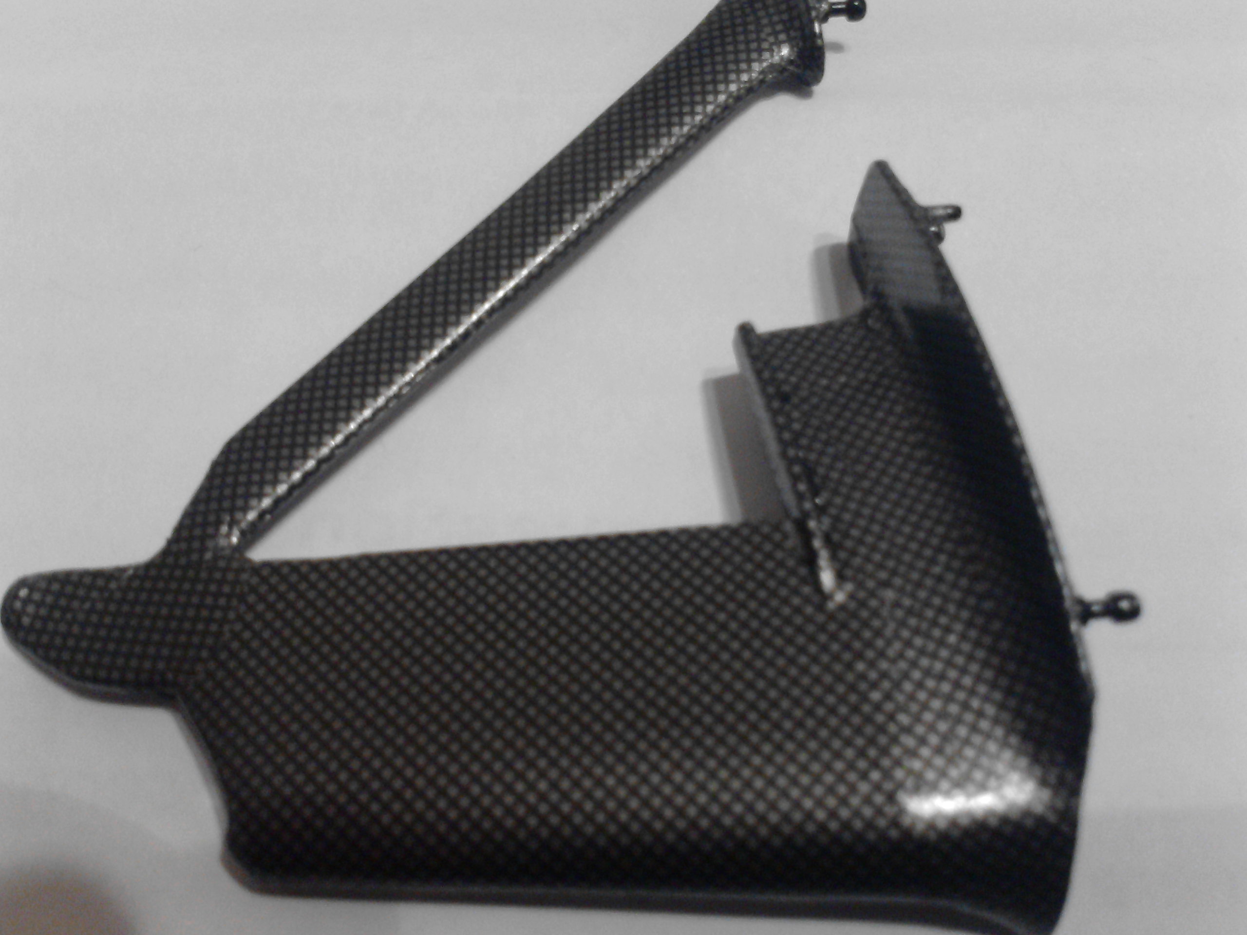 Hi all, received issues 3 & 4 this week so had a god at putting carbon on to the top suspension arm & push-rod. What do you think ? I did the top susp, in two sections..OhMyGod what a jod 3 hrs and 1 full sheet later done better order some more i'm going to need it BigGrin