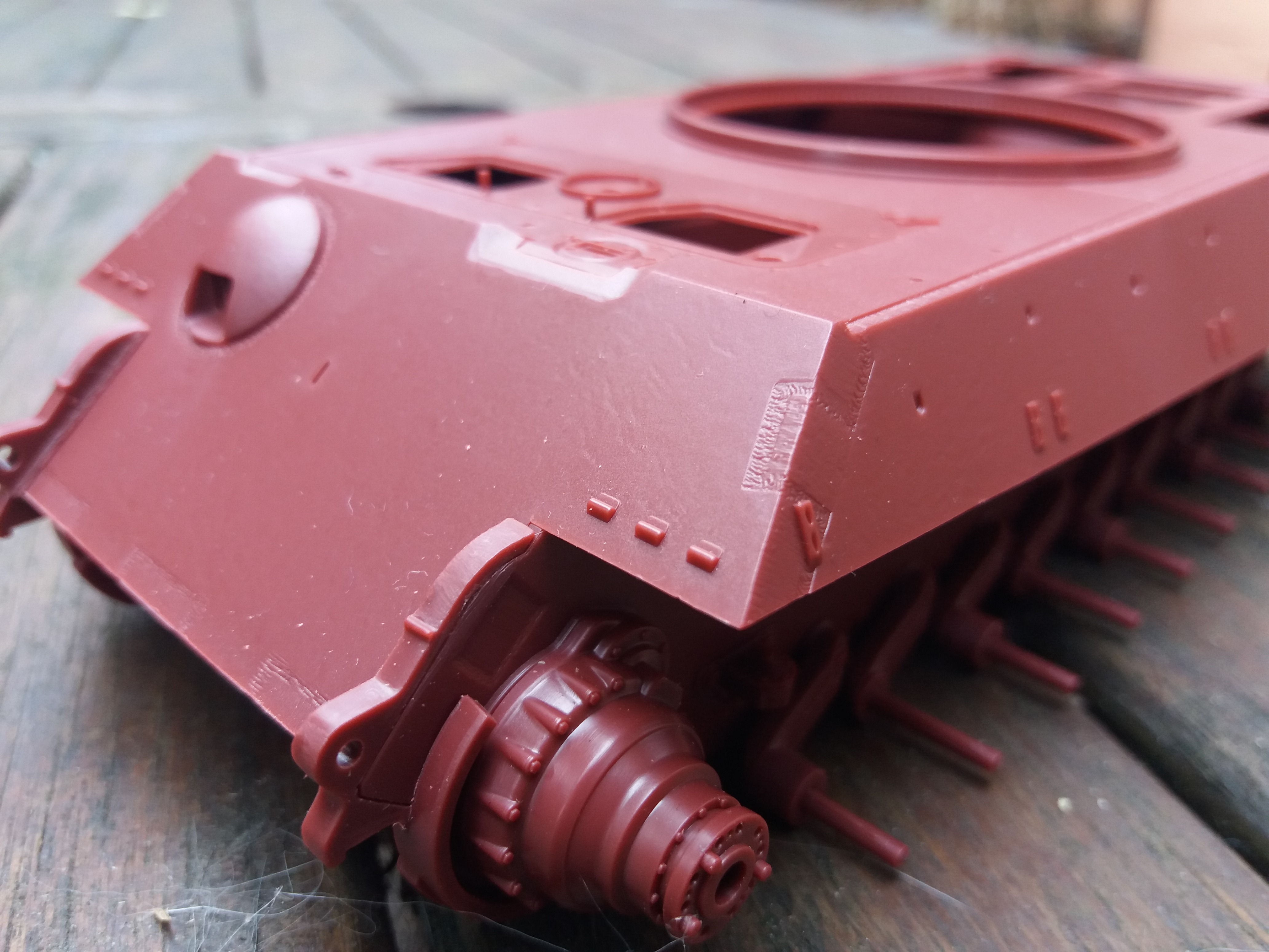 Thanks for looking in Alan and jase.Added the rear hull ,some nice details already moulded on ,added some more but left the exhaust off until painting.A ball and socket joint make the machine gun moveable.At this point the upper and lower hull are just dry fitted but you can see the fit is fantastic.