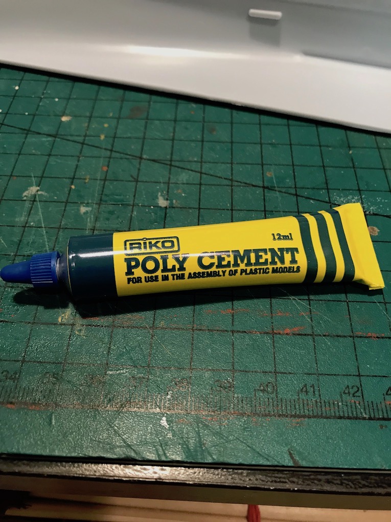 The two stabilisers are very thin and flexible parts and I found the easiest method of installing was to hold the part in place at one end and dab with extra fine poly cement, then move along and repeat until the whole part was correctly in place. I then flooded the inside join with the same glue and let capillary action get on with the job.
