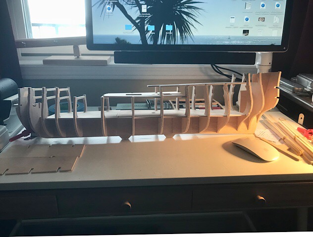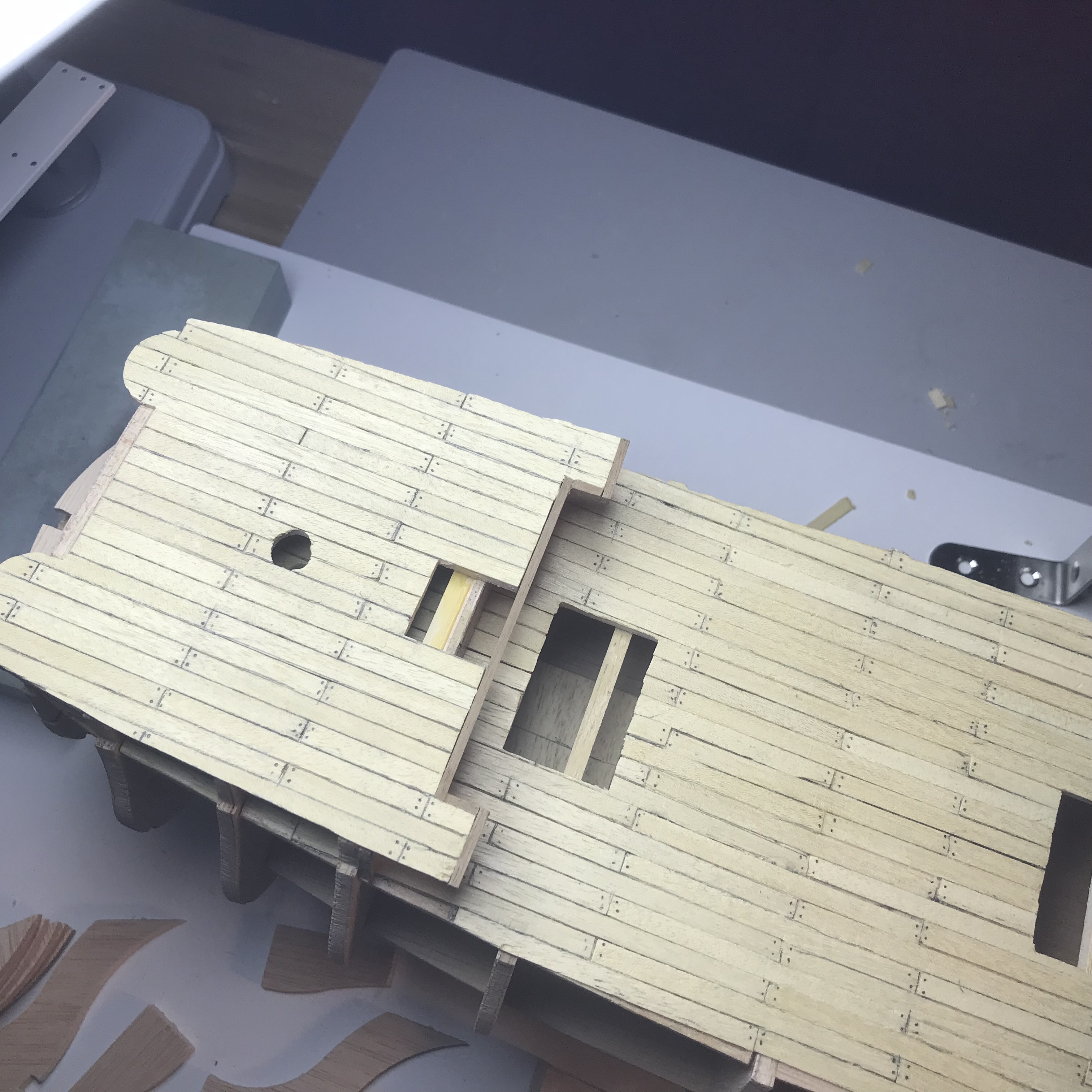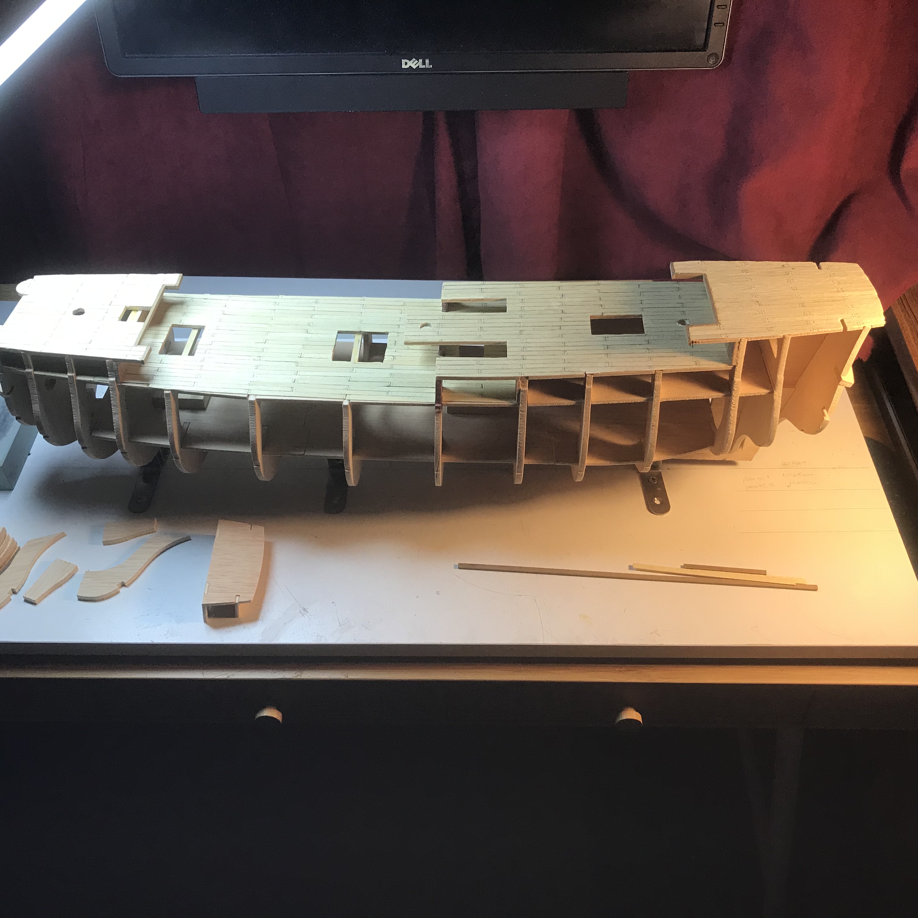 Was originally a bit put off by the deck planking but spent more time and took extra care to keep the joins inline - plus I was able to buy a decent set of pencils that made a big difference. Otherwise, all went well and every think fits nice and tight. I have so far kept ahead of the wood getting too dry by keeping the packs in a plastic box with a tight lid and running a humidifier in the room. Seems to have worked good.