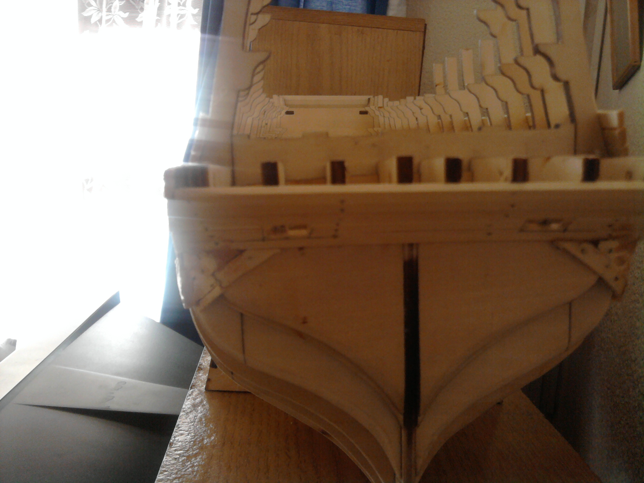 I am wondering if anyone else in SA is having this problem. According to the model pictures, the first level of planking on Victory's hull, towards the stern, ends on the bottom of the galley supports and must be in line with the lower gun deck. This was fine until I saw that my first layer is not in line with the bottom of the galley supports, in fact, it is about three layers out (when using the lower gun deck as a guide). I carried on, thinking that maybe the galley is going to be smaller than the books example, but when it came with issue 40, this was not the case. How does one rectify this, I was thinking either extending the last ribs up to accommodate more planking, or somehow shortening the galley structure (which seems foolish).