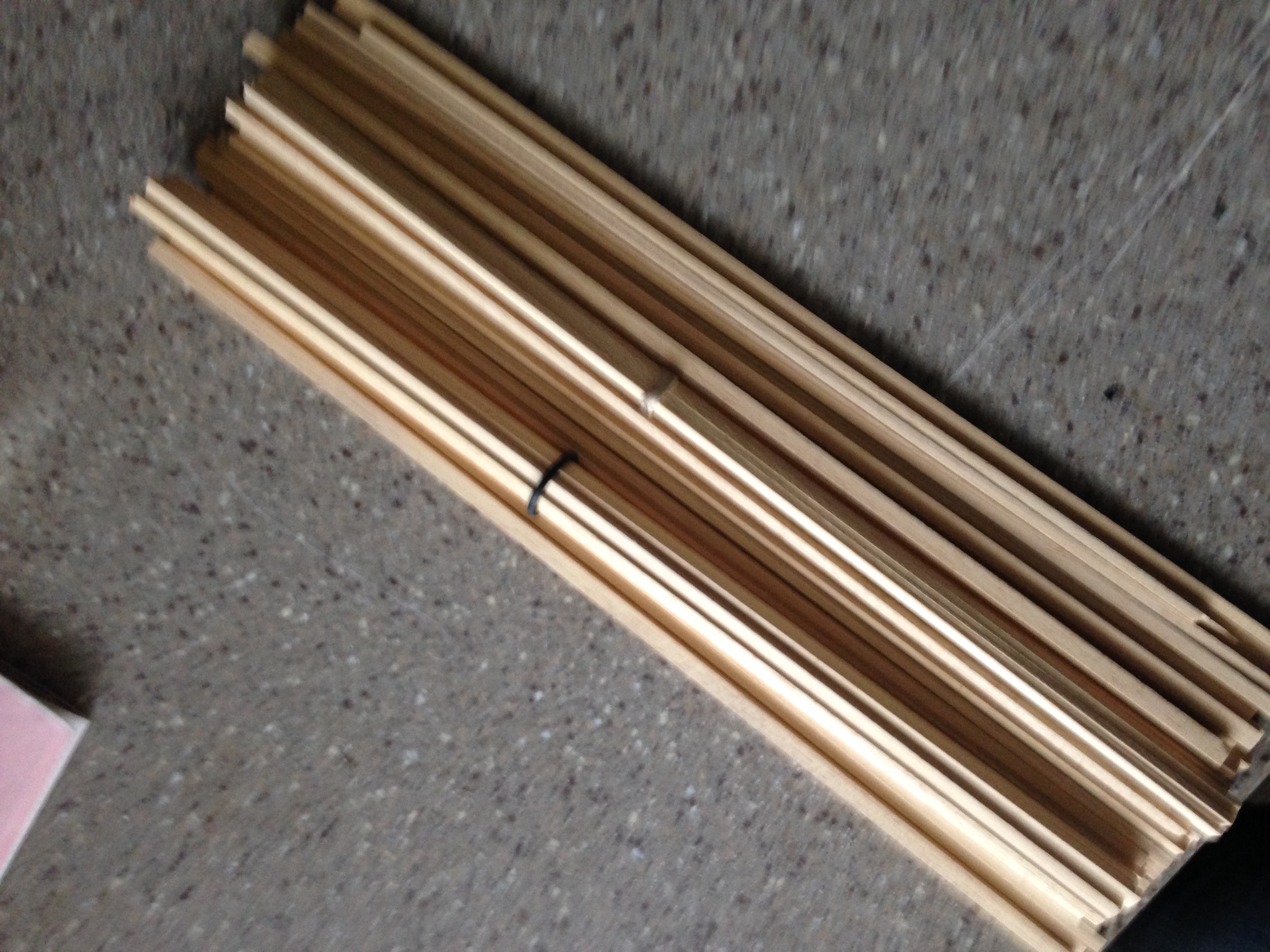 Not sure how you have 45 strips in one bundle but if you look at the official build and the download instructions it will tell you which strip of wood you need for each stage by looking at the instructions and measuring the size of the strips.