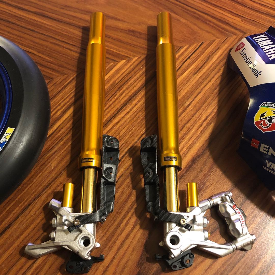 Hi, The front forks are metallic finish on the lower part but painted in the upper, but they sure are metal and heavy. Alec alemo attached the following image(s): Built: Bluenose, Arab Dhow, HMS Bounty, Hummer H1, D51, Spitfire,E type Jaguar. In Progress: HMS Victory, , Yamaha YZR-M1