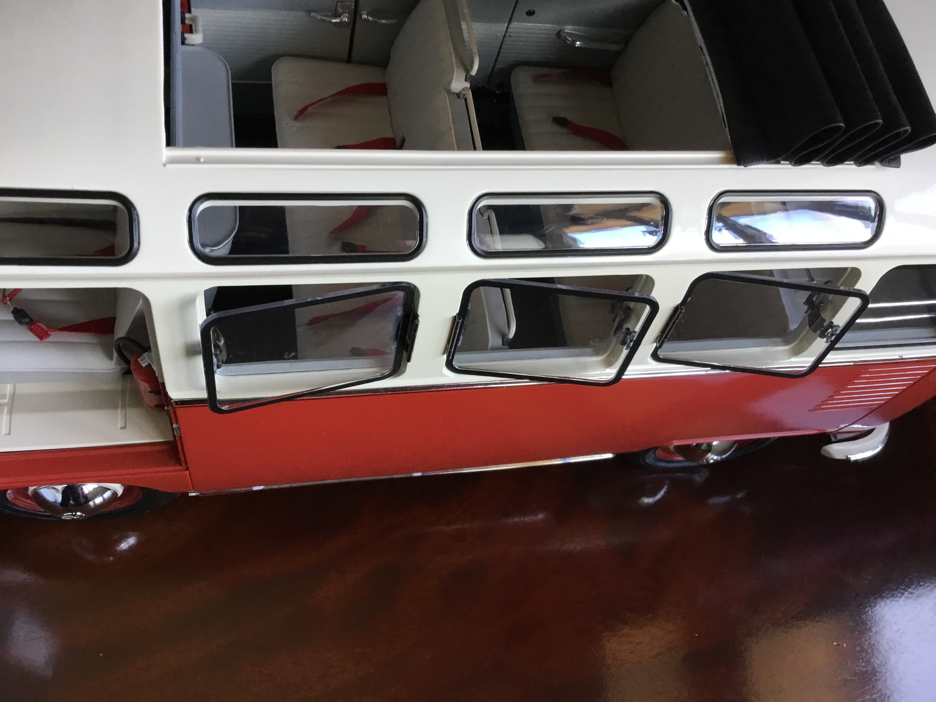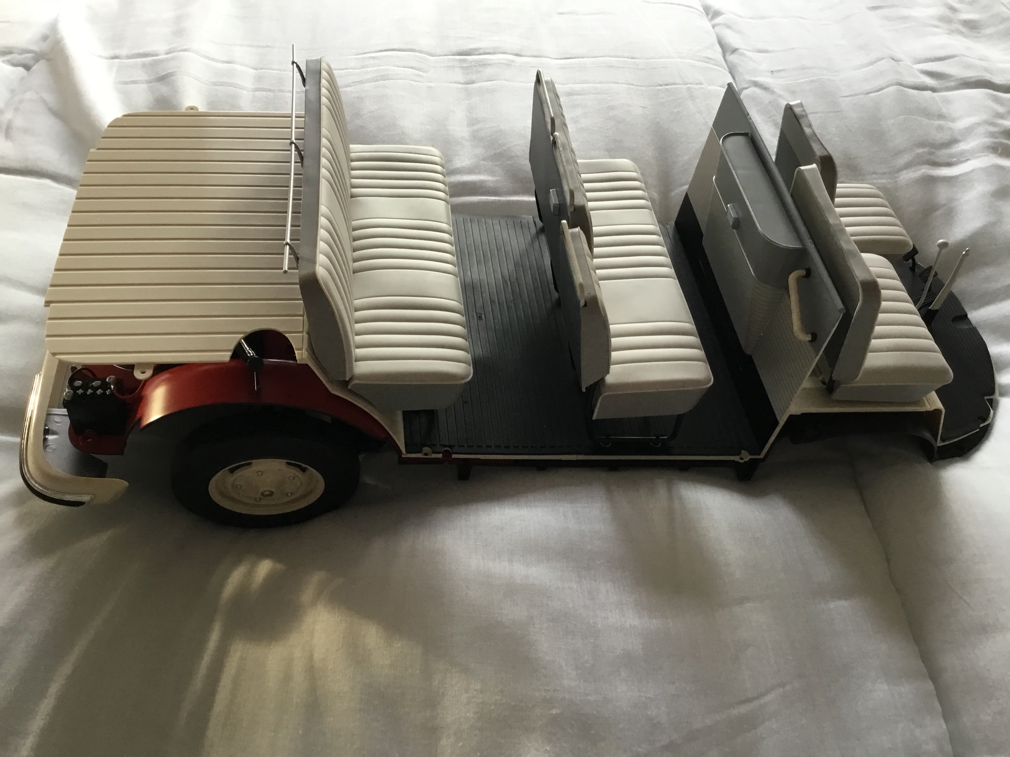 Have added 8 photos of finished build. Replaced sunroof, added seatbelts from scratch, had wheel rims painted c/o Roymattblack and included a fire extinguisher. Andy.