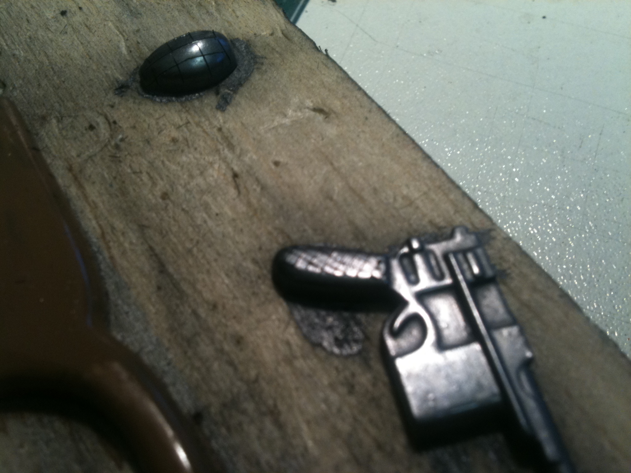 Then depending on the area to be covered I use a thin plasticard and double sided tape to fix the leather/cloth etc which