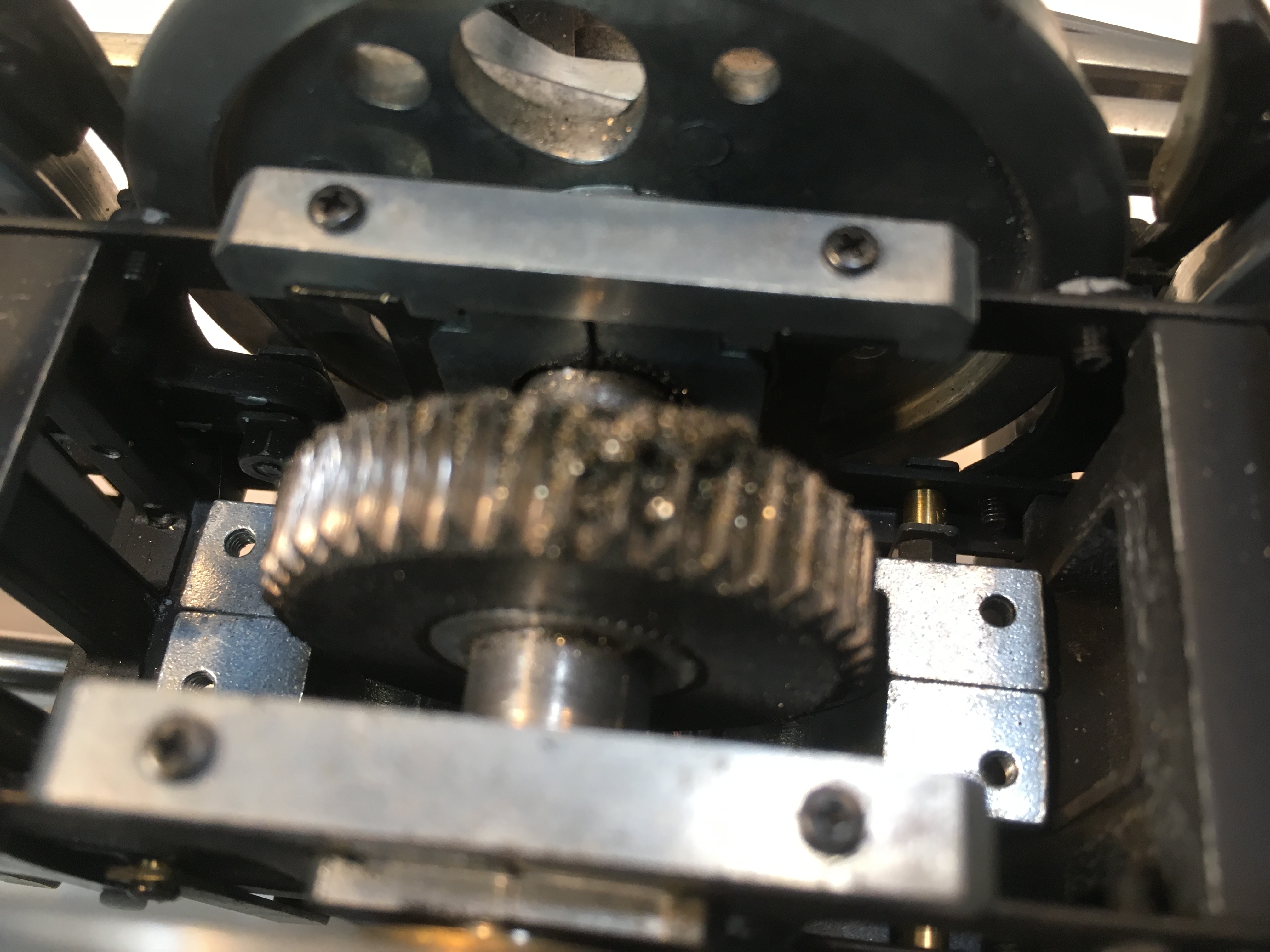 Sorry to drag this on, but it is driving me more crazy than usual. I opened the gear case and found the gear full of tiny metal "crumbs". All cleaned out, and everything looks to be installed correctly, but even under no load conditions(holding the drivers off the rolling road, it looks like the worm gear may not be fully engaged with the driving gear, because the worm gear tends to slip. Any ideas,folks?