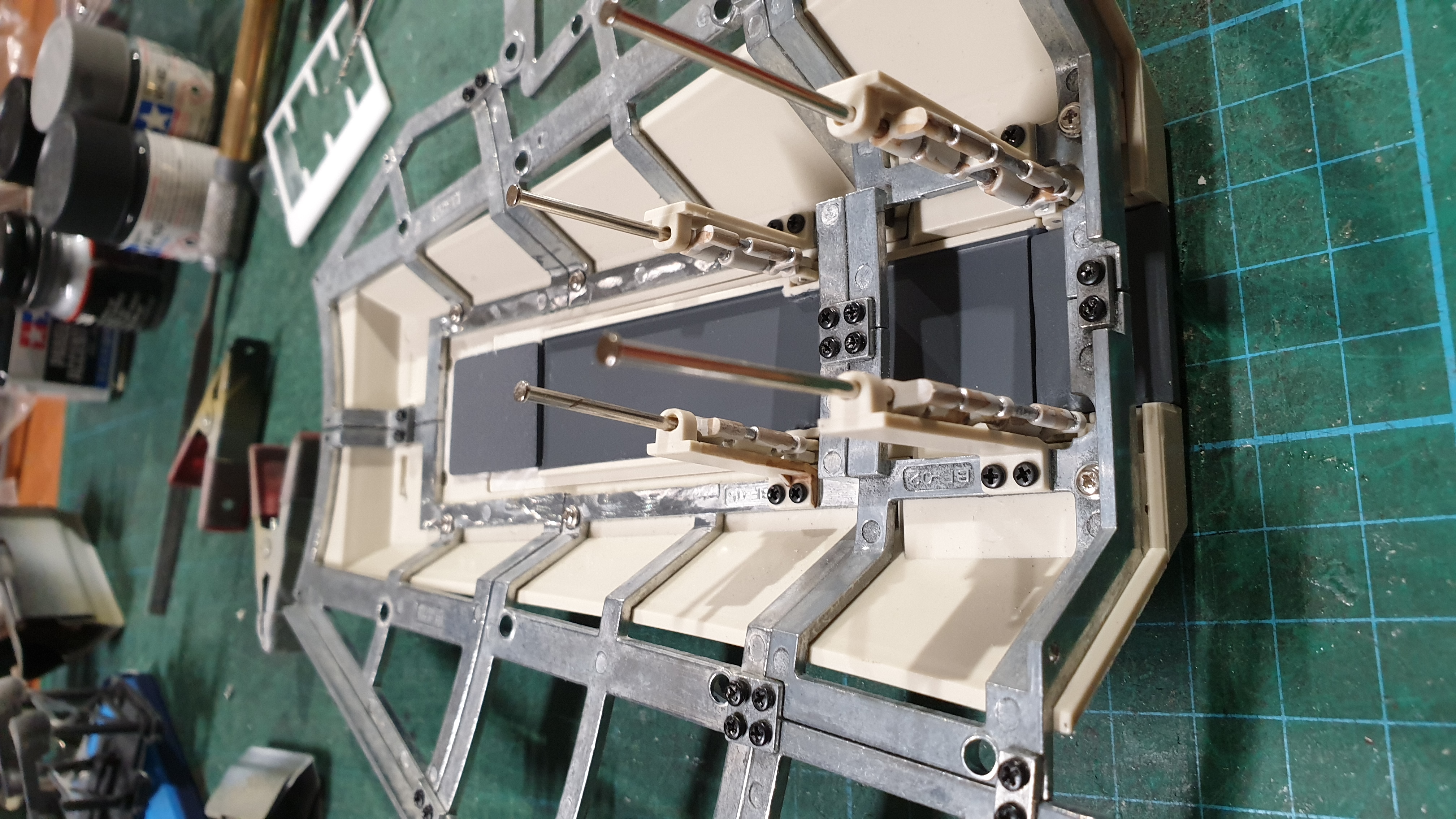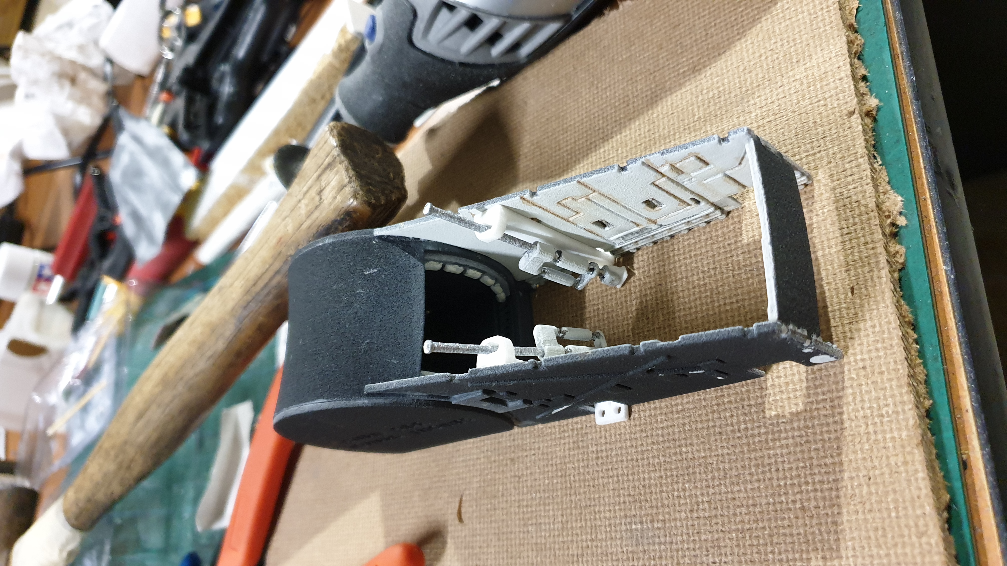 Some more progress on the build. Got most of the electronics installed and the interiors done. Came across an issue I didn't foresee and that was that the ramp mod I installed isn't to the same scale as the kit interior parts. So I had to remove part of the hallway close to the ramp section and put a mirror behind it. As a newb to electronics I did my own lighting for the interior, but It didn't quite come out how I would of liked, but for the most part it will be displayed covered up anyway. Now on to detailing the top half with the 3d printed exhausts. Also installed a new main engine light up feature from Falcon 3D parts as well as a new engine grill which adds a lot more details to the part. Enjoy spacejunk attached the following image(s):