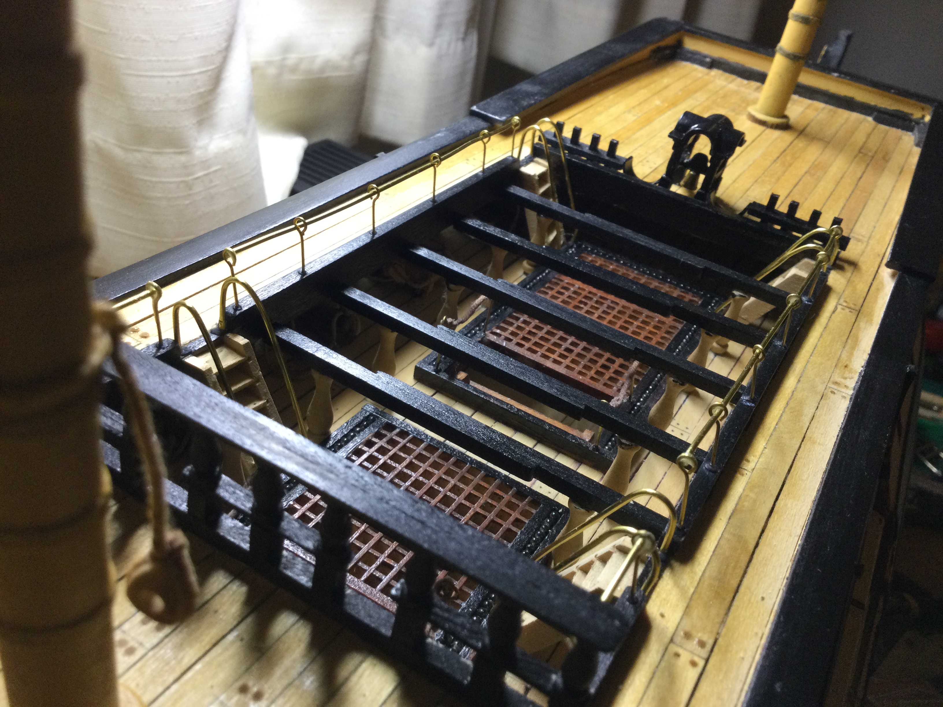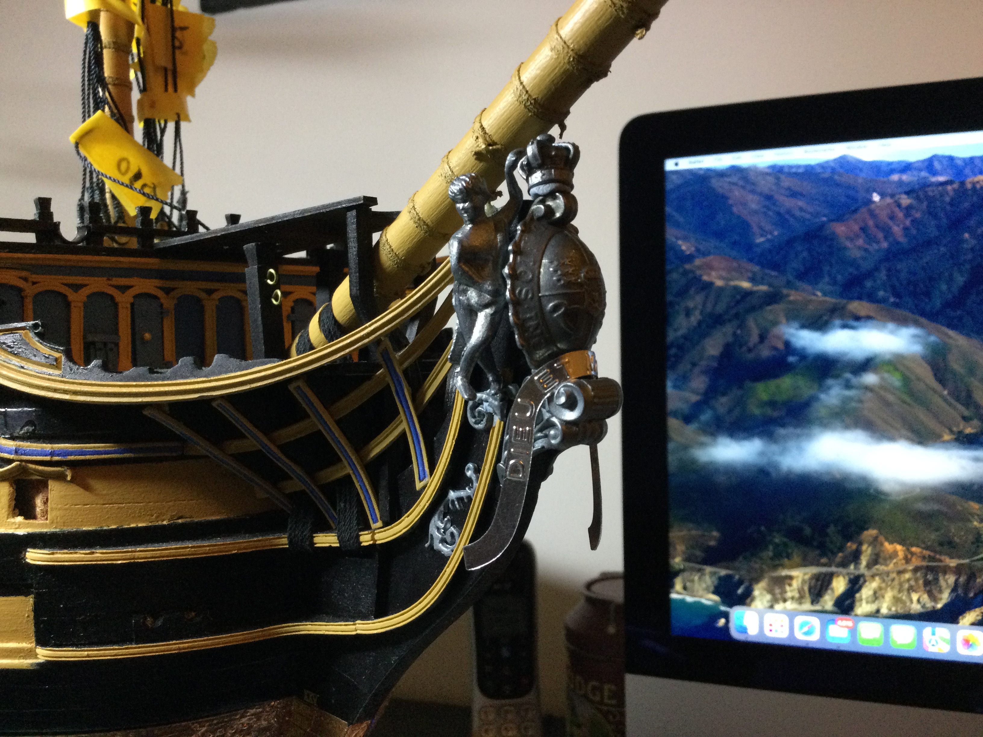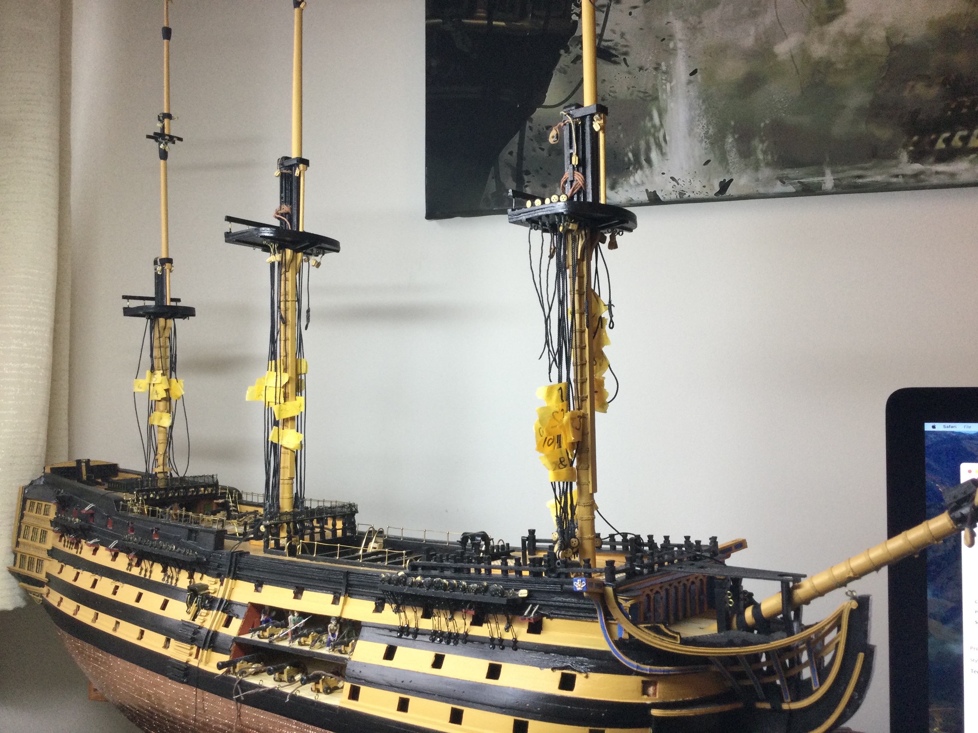 Hi Tom ive still not got it sussed on the pics front just yet, i have just got a new iPad so will try again soon, i have lots of pics to share and i will get around to it. I am at the rigging of the shrouds stage but have decided to go back and re do all the mast rigging of the blocks ect with home made rope instead of the supplied threads, inspired by yourself and Olha, her skills are incredible. i will post a few downloads to satisfy you for now.