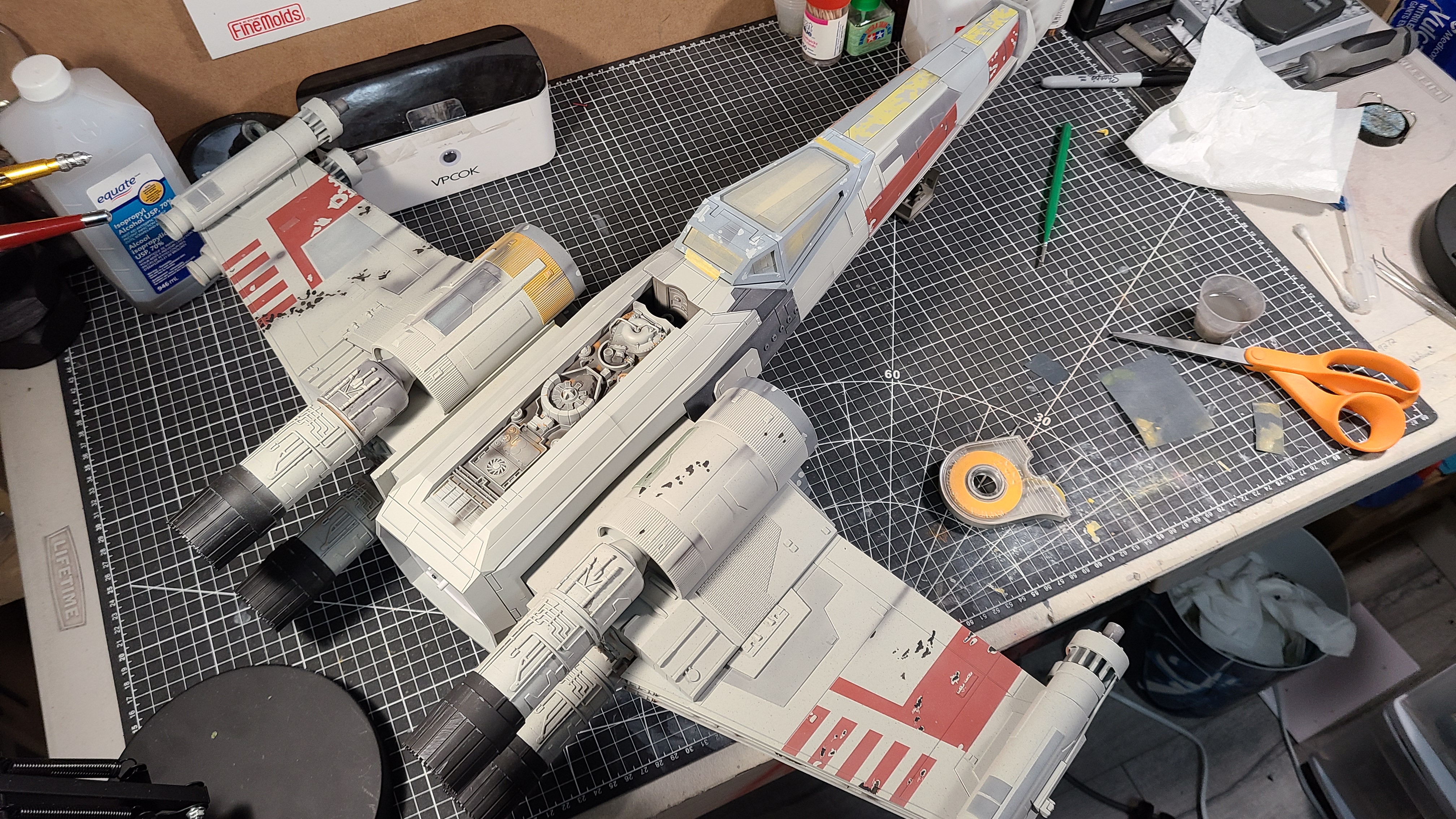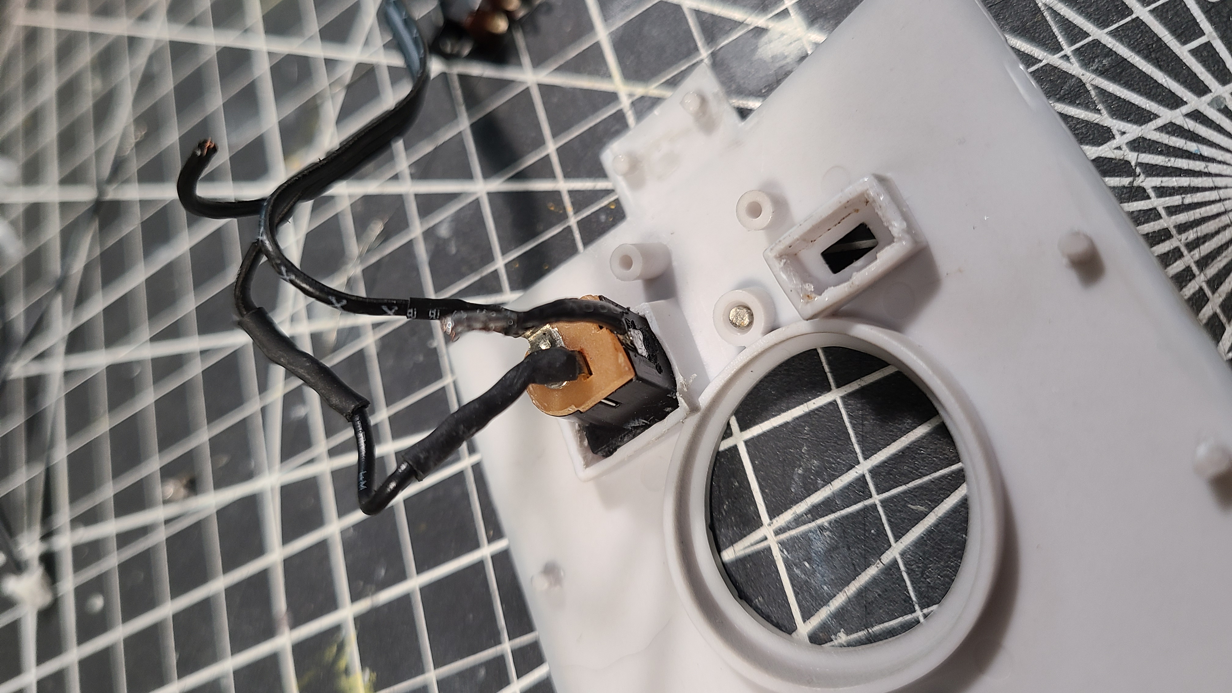 I ran into a problem placing the dc adapter plug and the power switch into the frame of the Xwing. The dc power adapter was crushed when I placed the panel on the frame. I re-wired the kit exactly as it was and now only the laser lights come on when the key on the remote is pressed. The lights do not turn off when the key is pressed again, and nothing else works...thoughts?