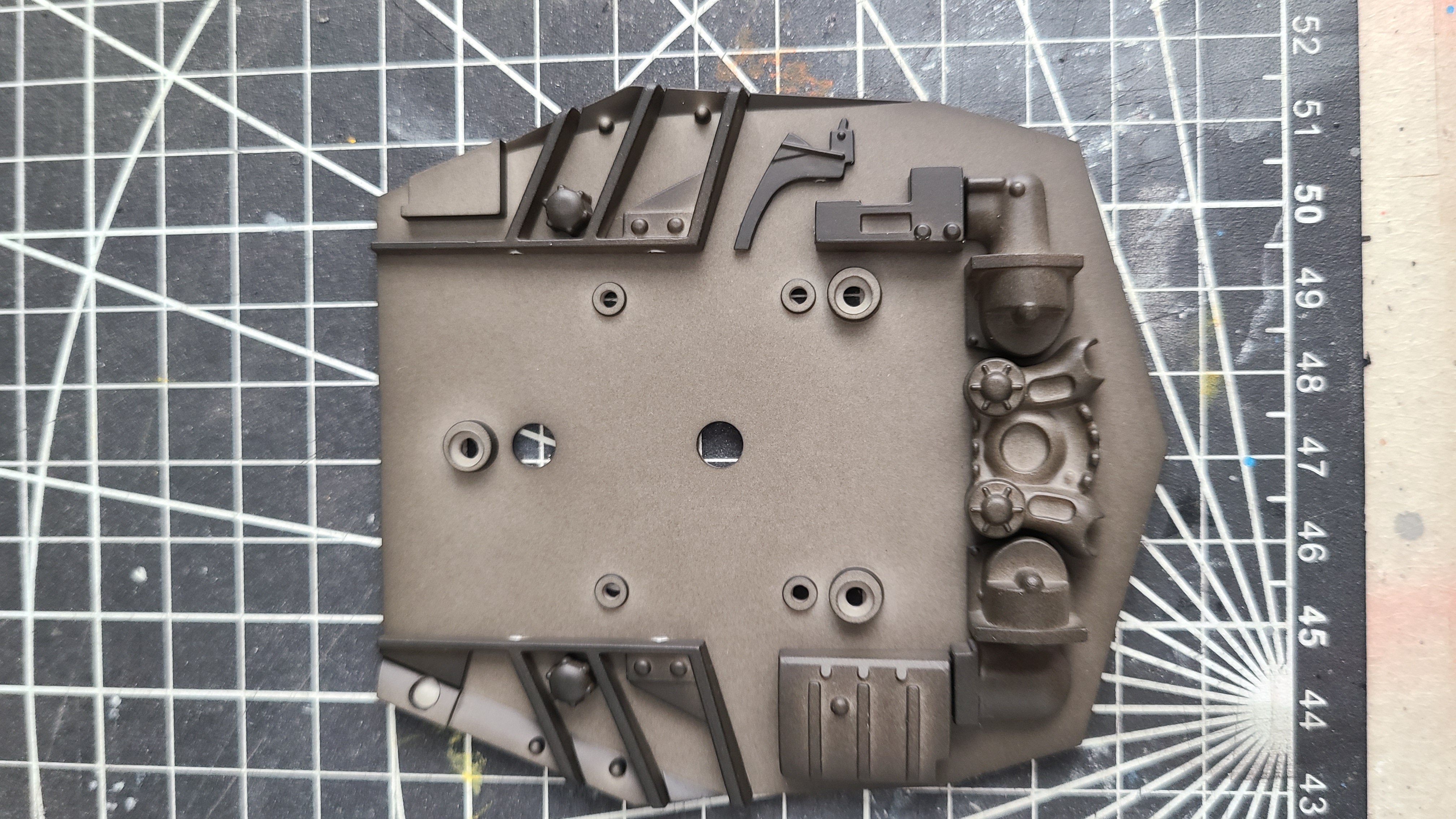 First, some greeblies and glue, then some primer and paint. Tamiya flat surface grey primer, followed by some base color of AS-16. It's currently 35°C here, so I waited all of 5 minutes before the paint had setup, before putting the pieces in place and essentially completing my build. Painting is my favorite part, time to make this kit look used and beat up! (Alot of my technique used on the Falcom coming into play here)