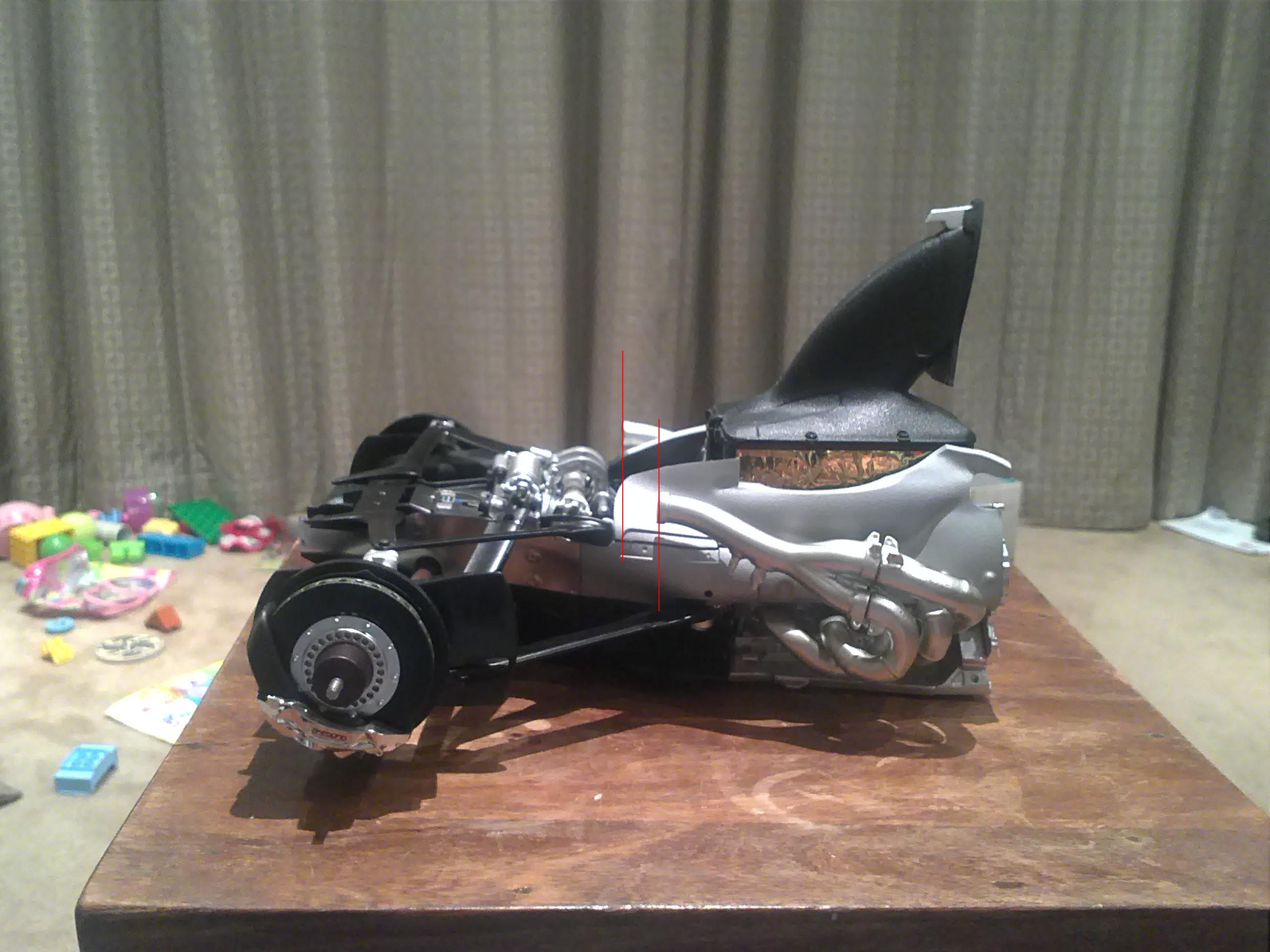 On all V-engine blocks, the cylinders on one side cannot be perfectly parallel to cylinders on the opposite side. On MP4-23, the cylinders on left-hand side are offset towards the rear, this means that the exhaust outlet of the left side (looking from the rear) appears slightly longer towards the rear than that of the right-hand side. In real life the length of the exhaust pipework needs to be the same length on each side to obtain optimum performance, and since the exhaust outlets of the left cylinders are offset towards the rear, it means that the left manifold naturally looks slightly longer than the right-hand manifold when mounted on the engine (when viewed from the rear), which is how it should look and is also reflected in the issue 1 poster.