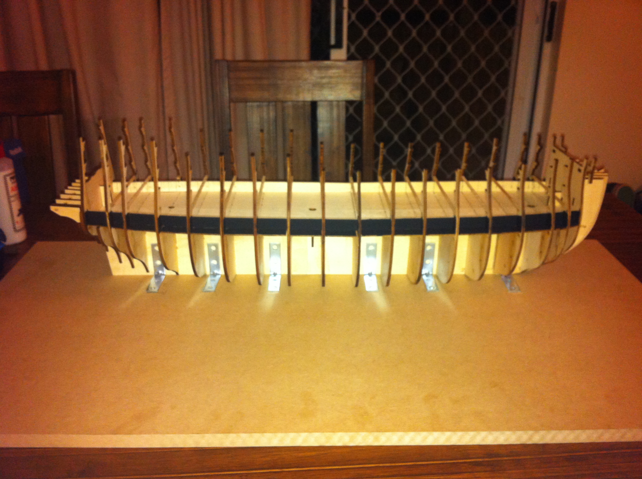 If you don't mind me adding my tuppence worth, try and get as smooth a curve as you possibly can, as when you come to add the curved tapered planks they have quite a sharp bend to cope with, and the smoother the bend the better chance you can get them round without them snapping. I also suggest that you have a good look at how Son of Bulwark did his, he posts some very informative information covering all aspects of this build.