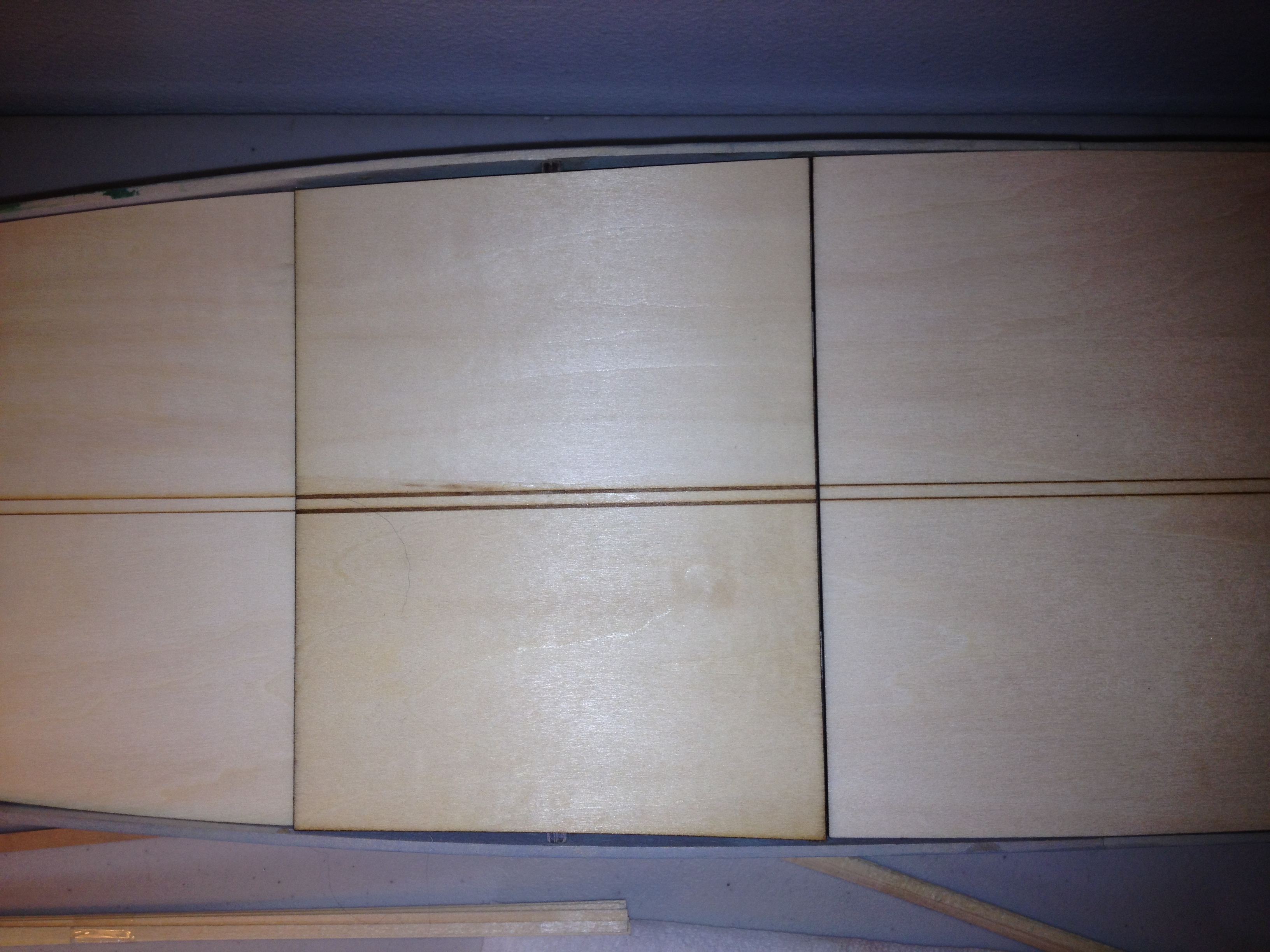 Hi db Im afraid its bad news so far as the formers go but there is a way round it. This problem with the hull formers has been pointed out before basicly you are sent two former '8's [one of mine was warped so I didn't use it] instead of a set of '7' and '8' former '7'[the one without the tabs] is sent out the month after or something like that. So the removal of the tabs has meant you have used a former no '8' as a former '7' this has caused the bowing out of the hull at this point. The resolution to this is to fit the ply decking and fill the gaps with filler and when you come to placing the decking this will be covered by the wood strip decking. Just plank the deck as normal from the central line outwards and after the decks placed you wont notice the bulge so to speak. Hope this helps regards Andy Current builds:-C57,Zero, Lamborghini Countach, Caldercraft HMS Agamemnon,Robi,R2-D2, MFH Cobra .