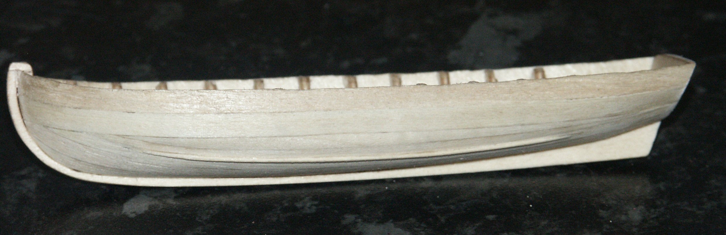heres a pic of the starboard side of the launch, as you can see i started to taper the planks the wrong way ( the third and fourth from the top.