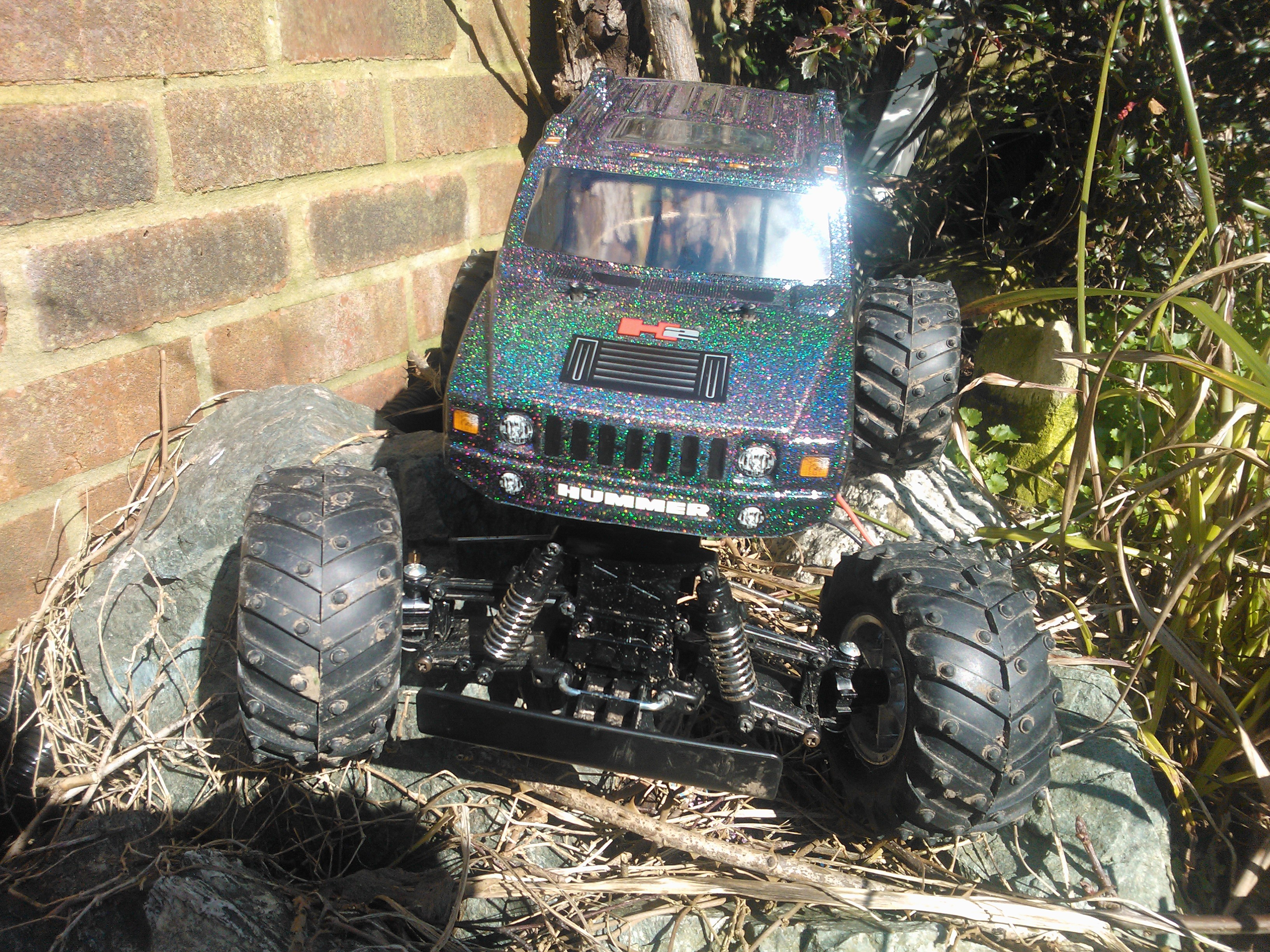 Proline Hummer body shell for Black foot painted in lame flake (metallic flakes) and black paint. (And mud)