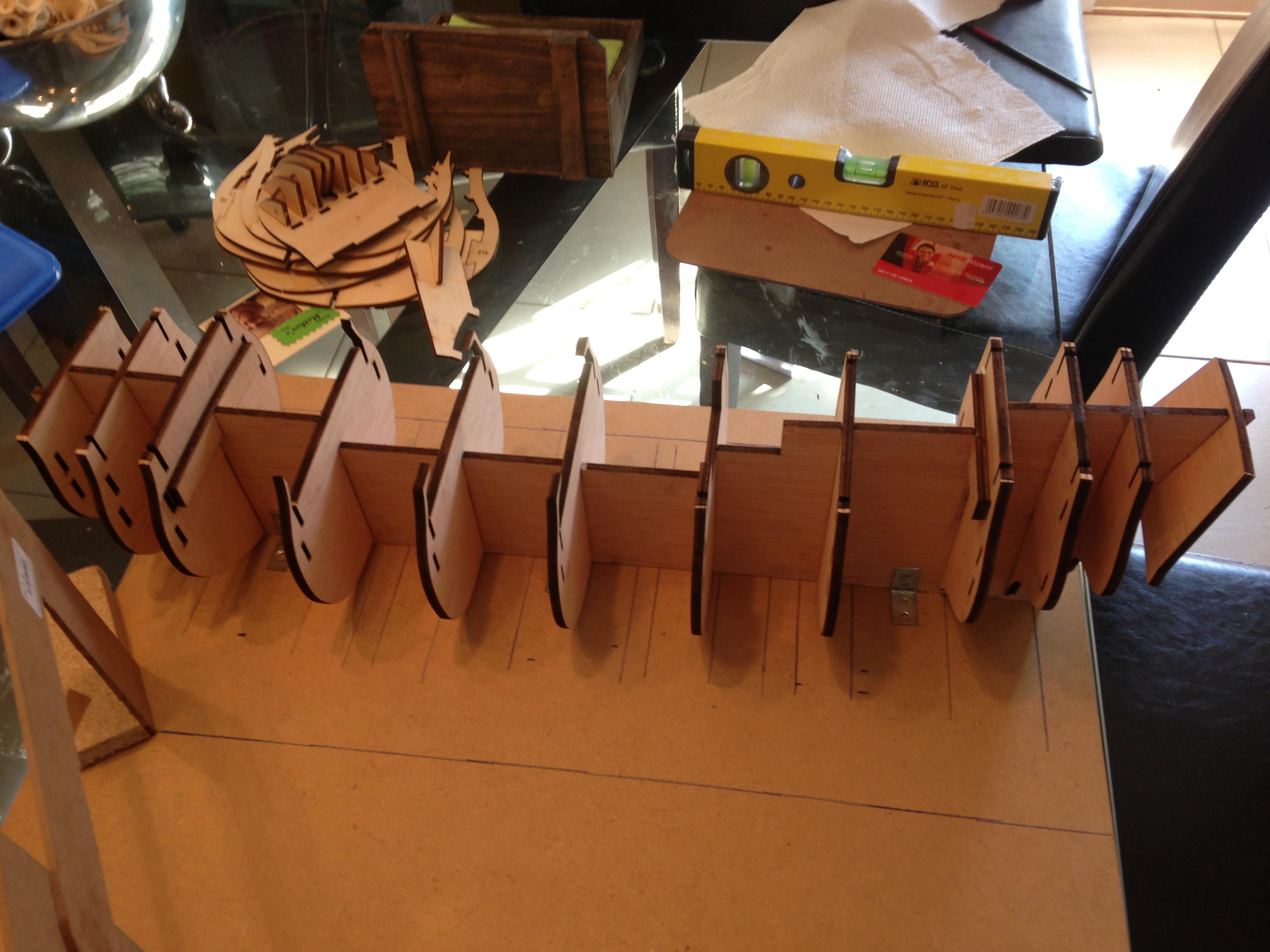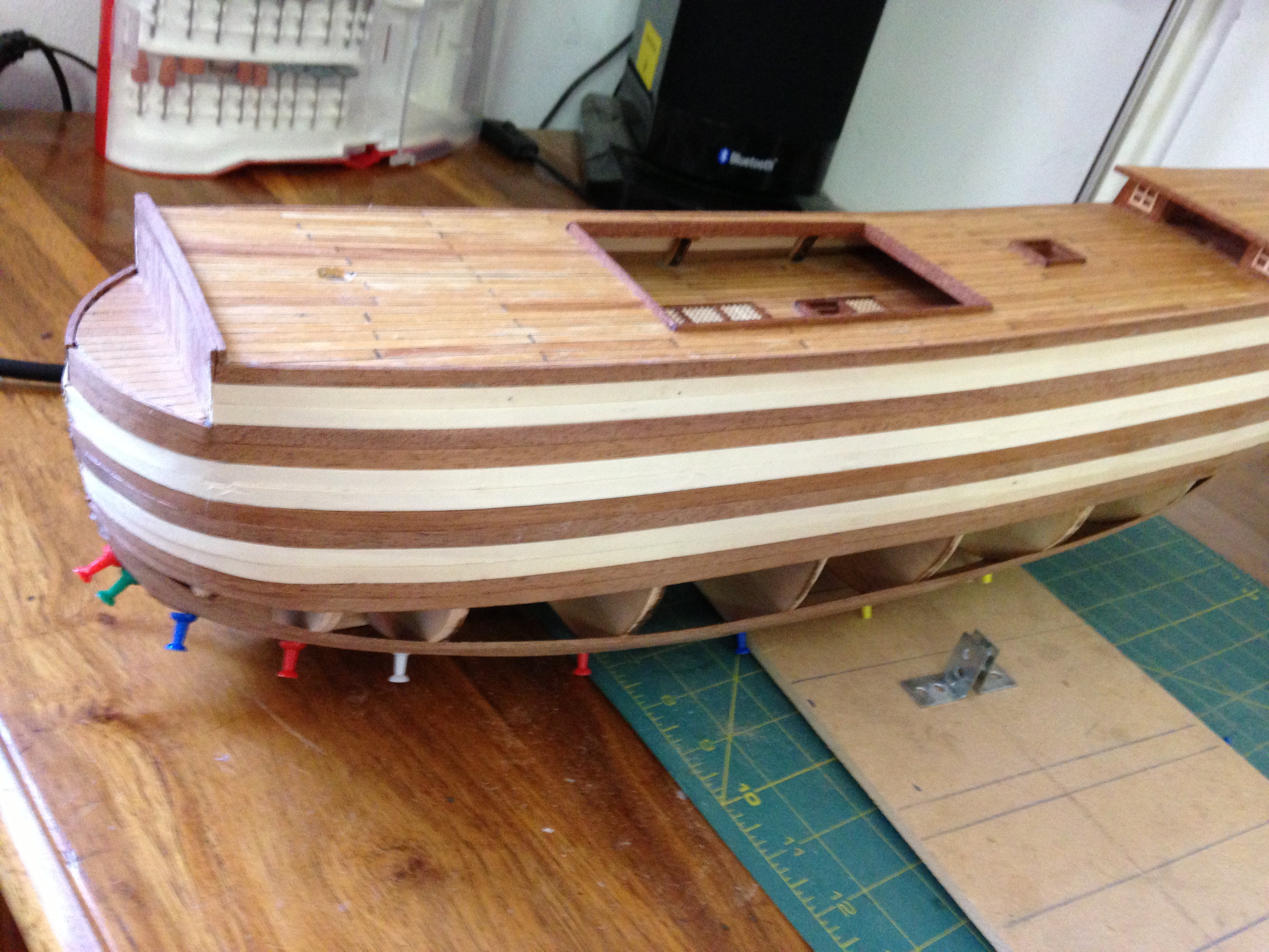 Have started the hull planking. It has been relatively easy up till the next few days where the plank twisting will have to start getting quite serious towards the back of the boat.