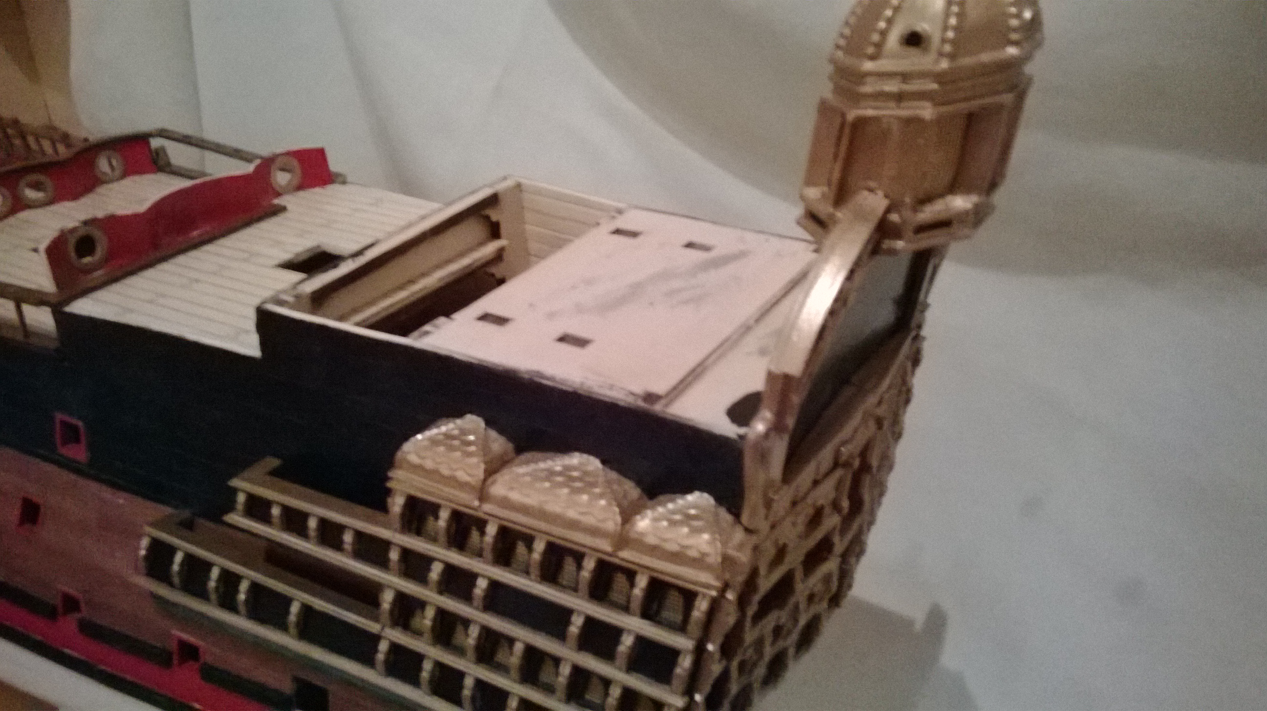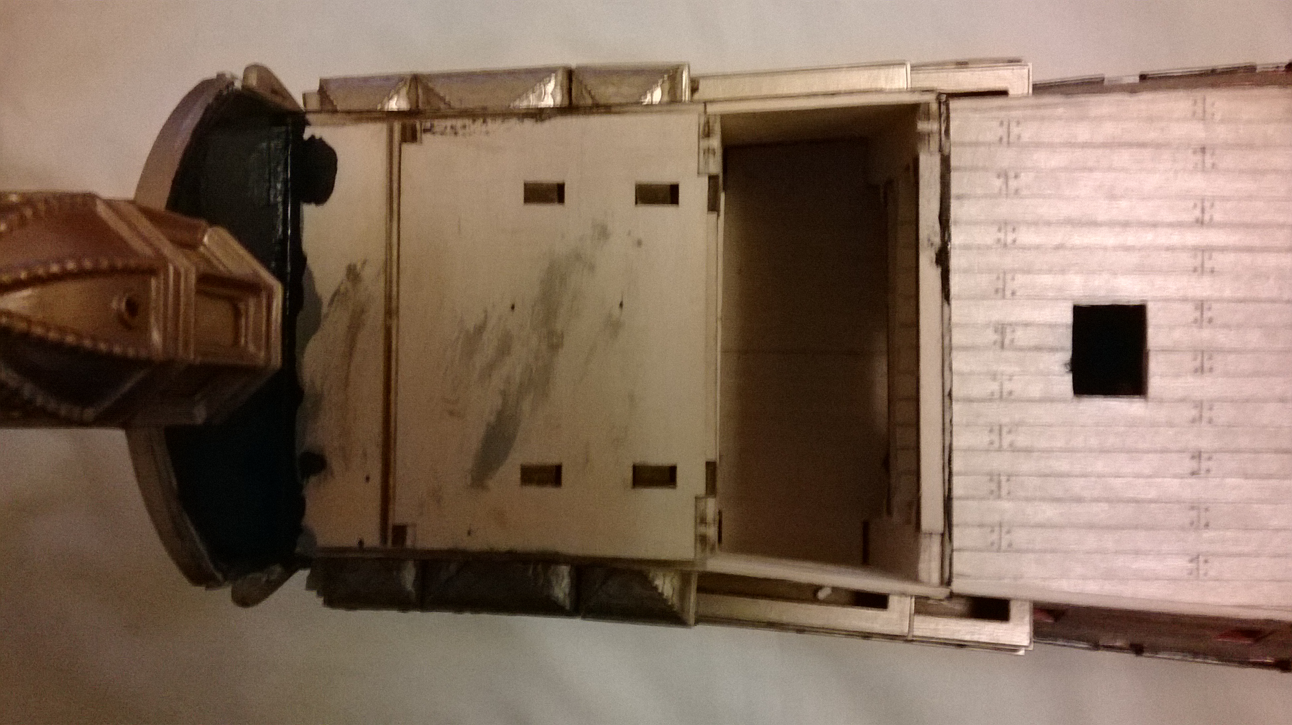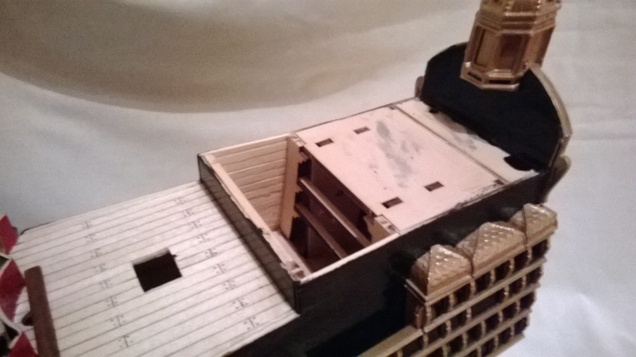 Hi Karl. I hope these help a bit more. The quarterdeck panel measures 123mm but the distance on my model is 126mm from the inner face of the transom to the end of the bulkhead.